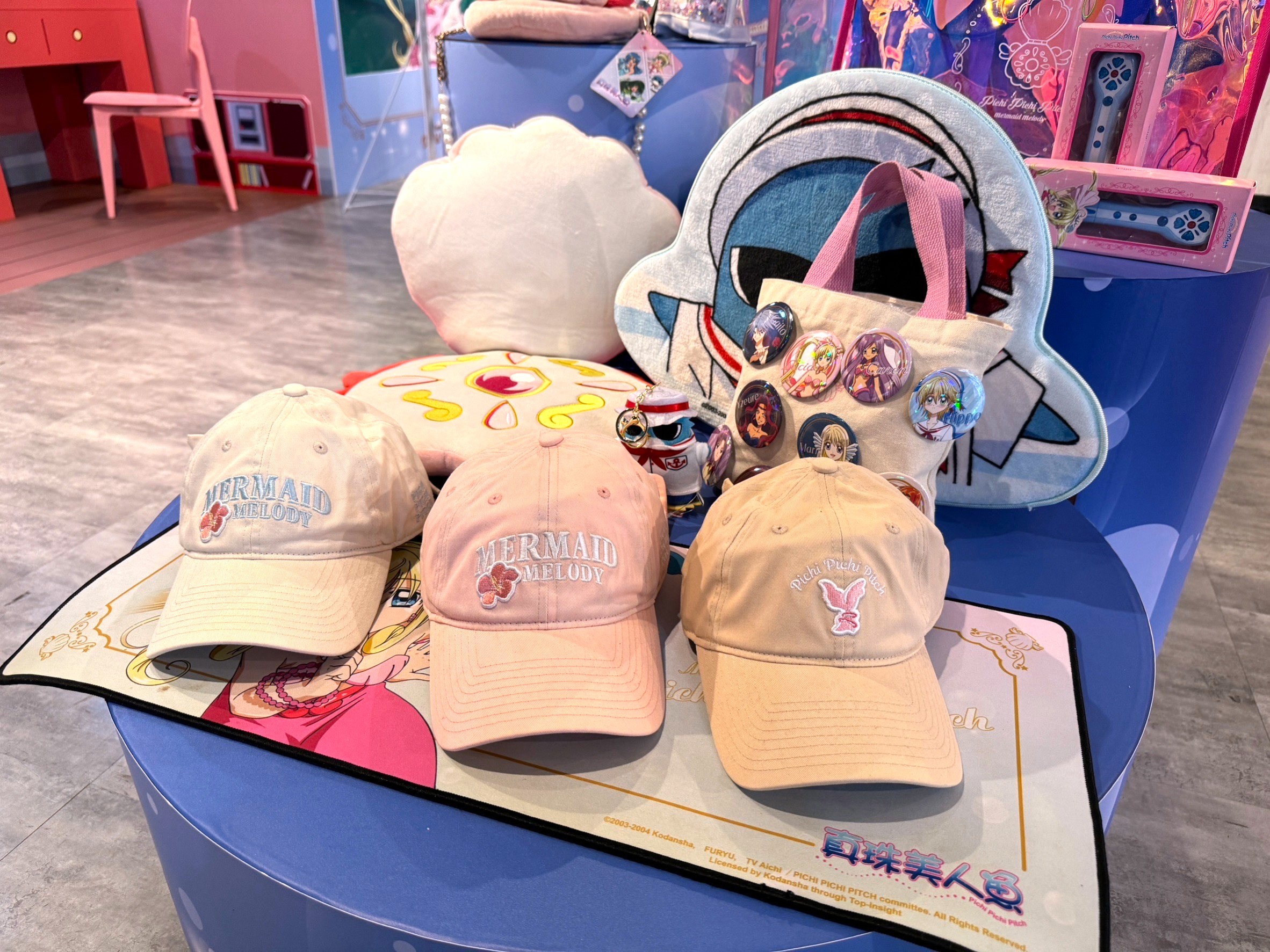 這次《真珠美人魚》主題快閃店以湛藍色的海洋為主題,一進場就會看到美人魚公主們在門口迎接著各位。除了超多超讚的美人魚週邊之外,還有限定的《真珠美人魚》拍貼機20週年版本以及巨型扭蛋機!除了有扭蛋機限定的波音及麗娜貝殼造型絨毛鑰匙圈之外,還有許多夢幻周邊,粉絲們絕對不能錯過!中部的粉粉們趕快把握機會,美人魚公主們在新光三越台中中港店等著和大家見面!