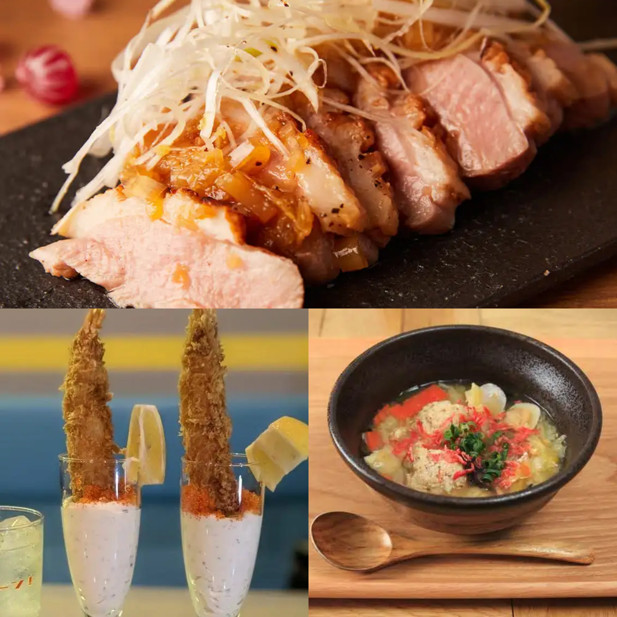 而眾多的餐點中,「巨大辣味帶骨雞腿」是店家的招牌料理,吸飽特製辛香料的雞腿讓人吮指回味,尤其推薦搭配麵包更是讓人讚不絕口。當店特色之一的當季生魚片、蔬菜以及口感清爽的各式美味天婦羅也都收穫了無數好評,而這裡的「お通し」,也就是居酒屋內的小菜,一人是500日圓,但是可以享有關東煮吃飽的福利,這樣的CP值誰能不心動呢!