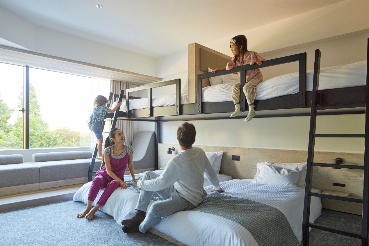 家庭房型提供料理廚具和餐桌 遠端辦公海外度假兩相宜 上下舖床位設計讓空間開展 好動小朋友充分放電