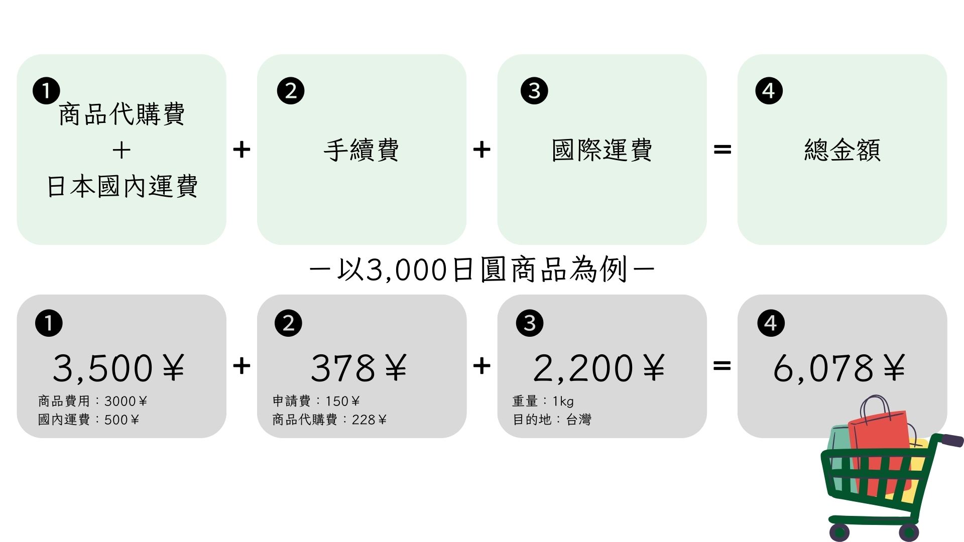 只要支付申請費用150日圓、商品加上國內運費的 6.5% 代購費、運回台灣的國際運費,剩下的就交給 Japan2You Shopping 處理,等貨品抵達台灣送到你手上囉!
