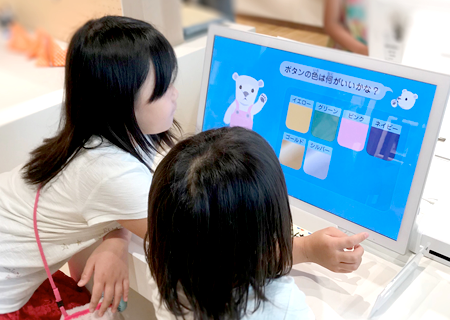 2樓則是可以學習拉鍊結構和歷史的展示空間,可以接觸到具有防水等特殊功能的拉鍊。 在中央的大桌子上,有時尚模擬器「變裝小熊」,可以自由更換螢幕上的小熊的服裝,並將其印刷到貼紙上,當作來館的紀念品(*每人限印一張貼紙)。
