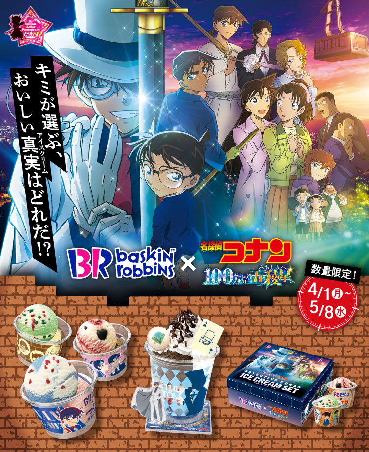 人氣動漫《名偵探柯南》在今年迎來第30週年,預計在4月12日推出最新的劇場版電影《名偵探柯南:100萬美元的五稜星》(名探偵 コナン 100万ドルの五稜星),並且首次與31冰淇淋合作,聯名推出以名偵探柯南中各角色為形象設計的限定口味冰淇淋,以及代表各角色特色的雙球杯,還有絕對能擄獲少女芳心的怪盜基德聖代!