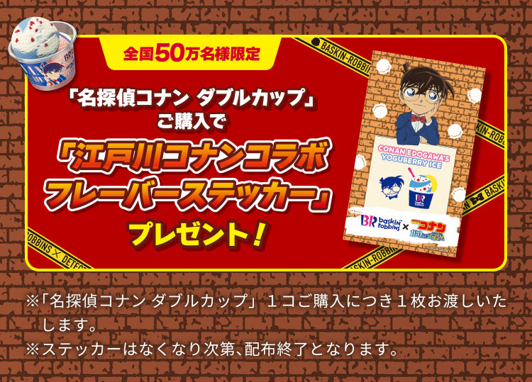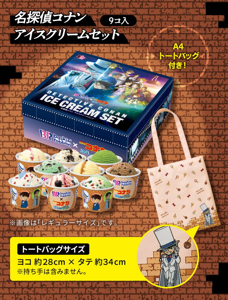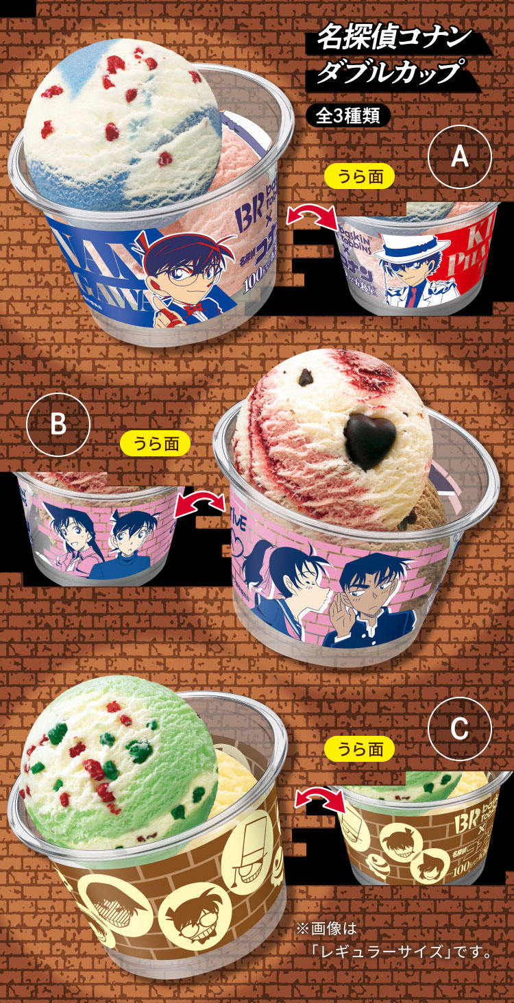 只要一次購買兩球並選擇杯裝就可以得到原創的限定款容器,總共有三種款式,分別是A:主角款(江戶川柯南/怪盜基德)、B:情侶款(工藤新一&毛利蘭/服部平次&遠山和葉)、C:人氣角色插圖款。