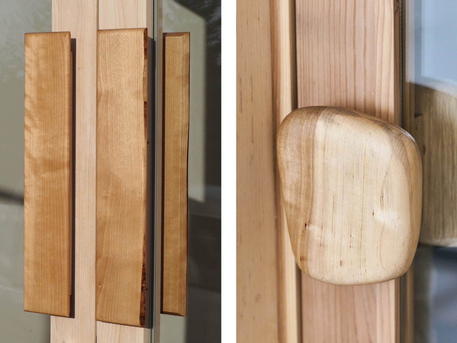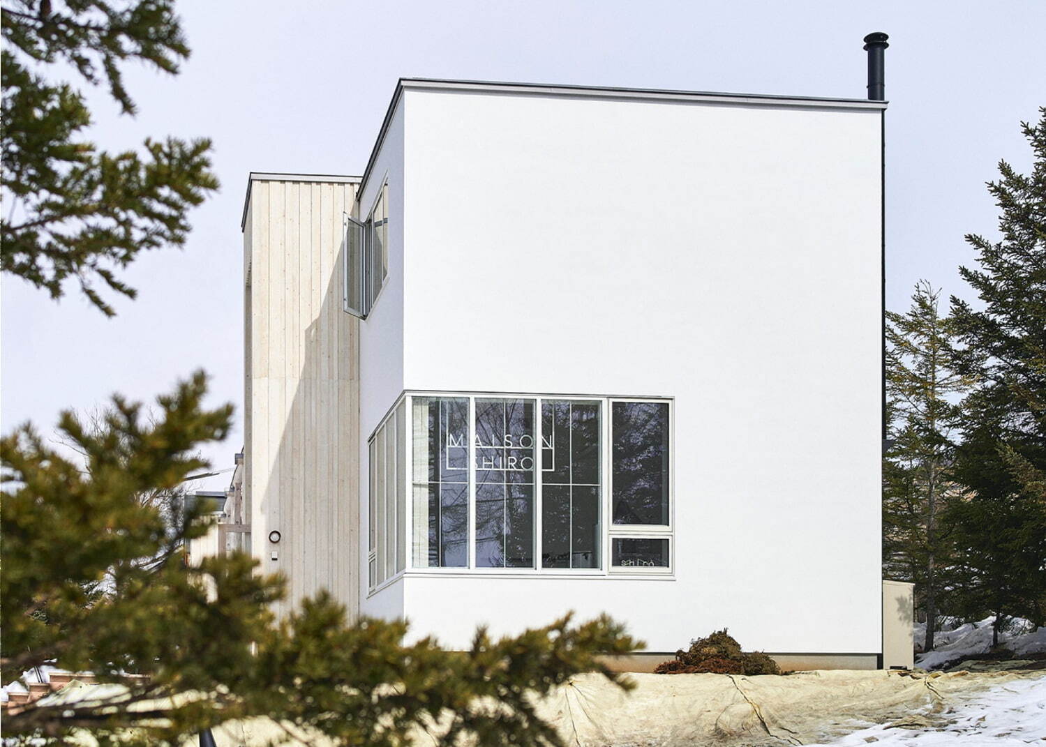 「MAISON SHIRO」的建築使用了北海道產的間伐木和製作家具時剩餘的愛別地區的真樺樹等8種以上的木材。 例如,入口的門把手採用了真樺樹製成,建築主體的柱子和樑則選用了強度高、不易扭曲的庫頁冷杉。 在這個與大自然親密相依的溫暖空間裡,可以享受悠閒時光。