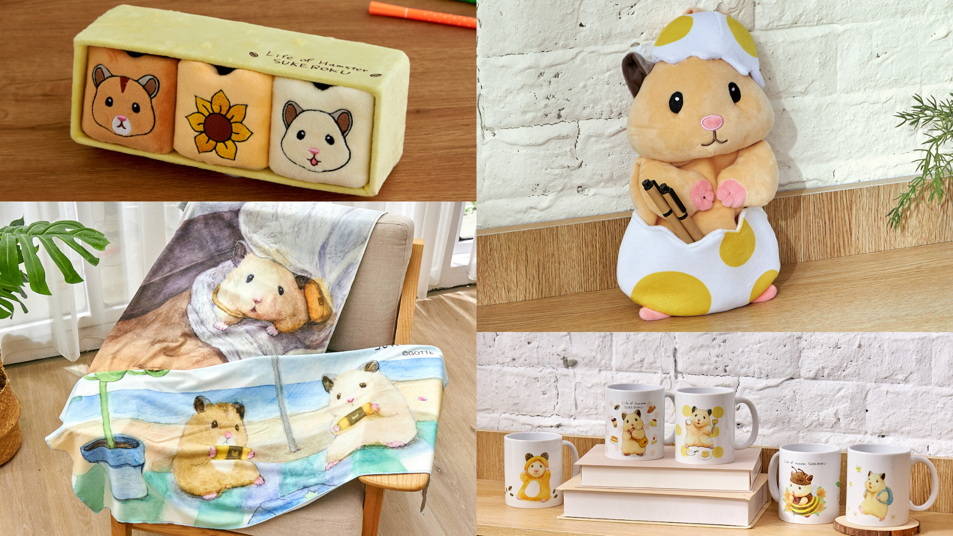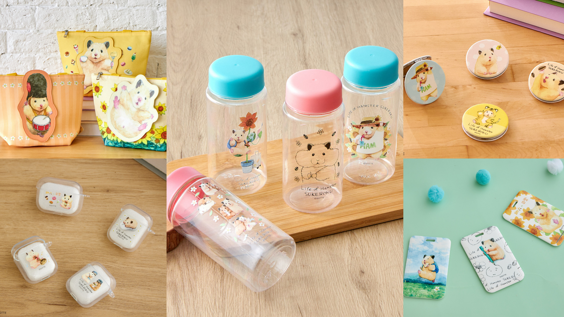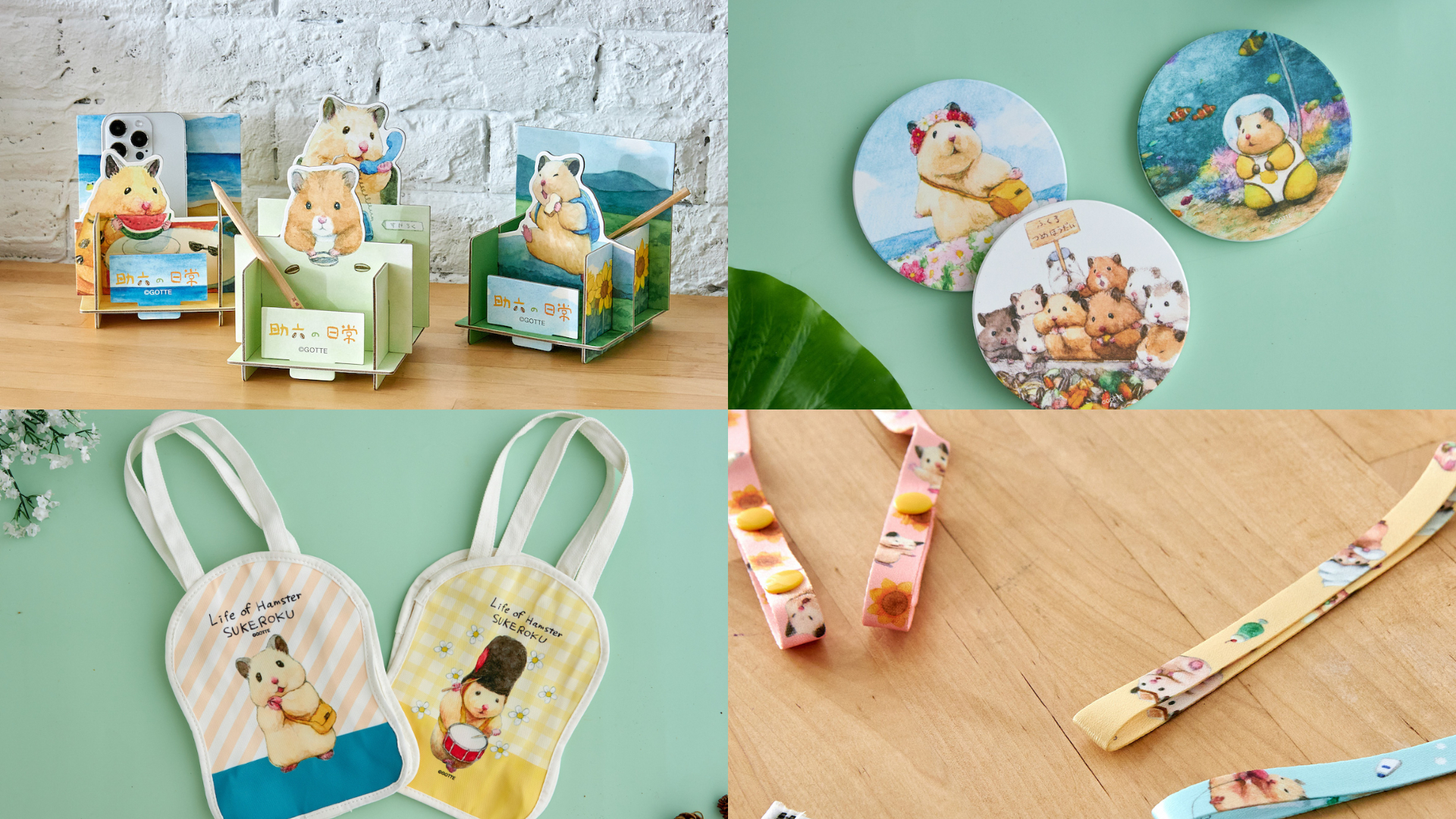 新春想要好喜氣、討吉祥,可別錯過這些求吉小物!助六破蛋而出的愛心「手拿鏡」,還有助六吹電扇及助六吃東西等四款,春天就要這樣充滿生命力!助六跟最愛的向日葵交織等三款圖案「口罩吊繩」,帶在身上陪你一起抵抗病菌!「飲料提袋」有助六一雙小手合十、擺出祈福動作,和助六打鼓兩款,外出拿飲料也方便!「陶瓷杯墊」除了有助六戴花圈在海邊度假,還有助六海底探險及助六與小夥伴上市場共三款,看著小倉鼠爭先恐後挑菜的興奮模樣,今年必定大吉大利!「手機架」有助六在向日葵田漫步、助六吃西瓜及助六接電話三款,放辦公室或家裡都適合,讓助六陪你一起努力!