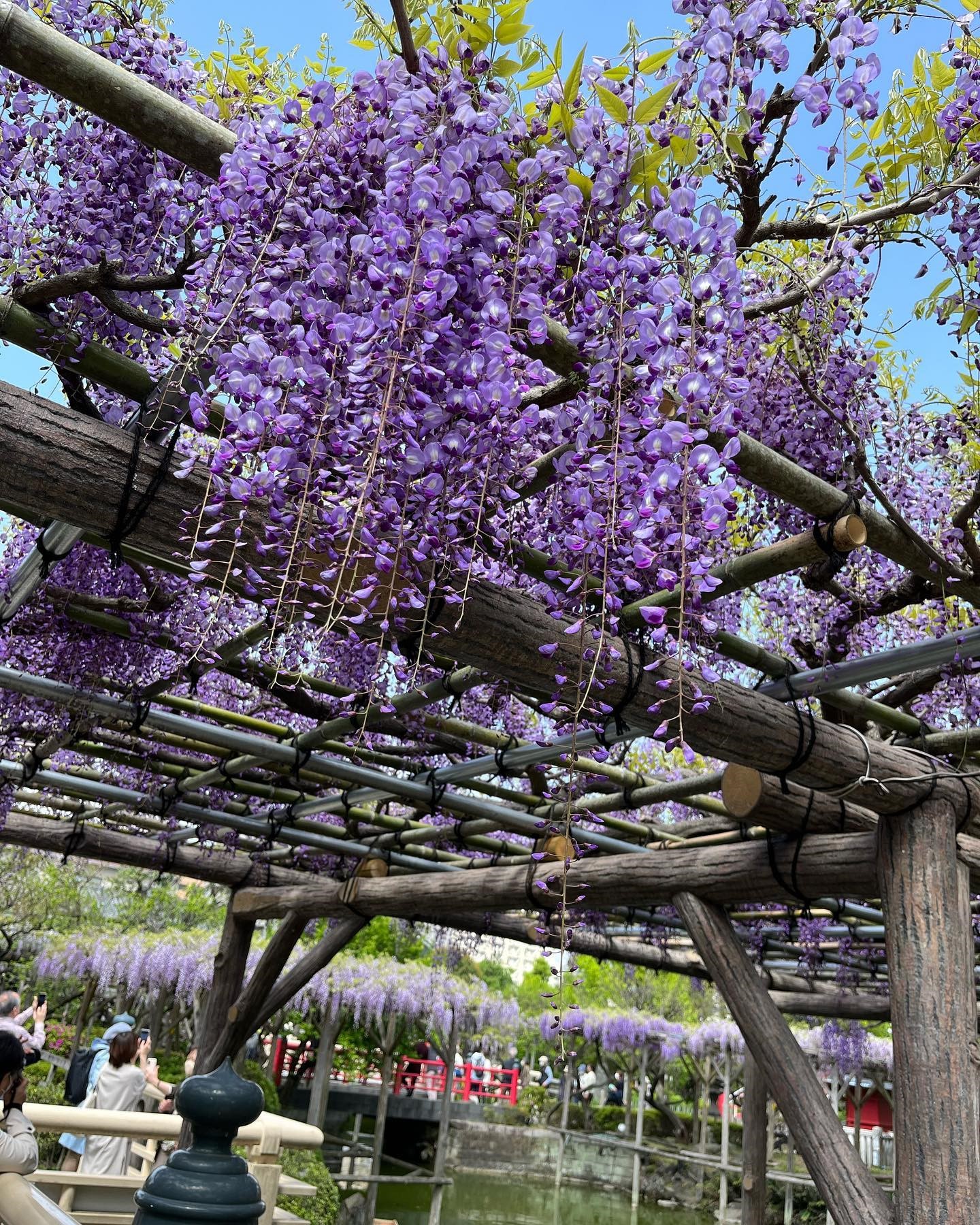 櫻花季逐漸進入尾聲,夢幻的紫藤花正蓄勢待發,號稱「東京第一賞藤勝地」的龜戶天神社,打從江戶時代以來,就是知名的賞紫藤花景點,每年龜戶天神社所舉辦的紫藤花祭,總會吸引許多遊客前往朝聖,今年的紫藤花祭於4月6日起至4月30日舉行,搖曳生姿的紫藤瀑布迎接著前來觀賞紫藤花的遊客們。