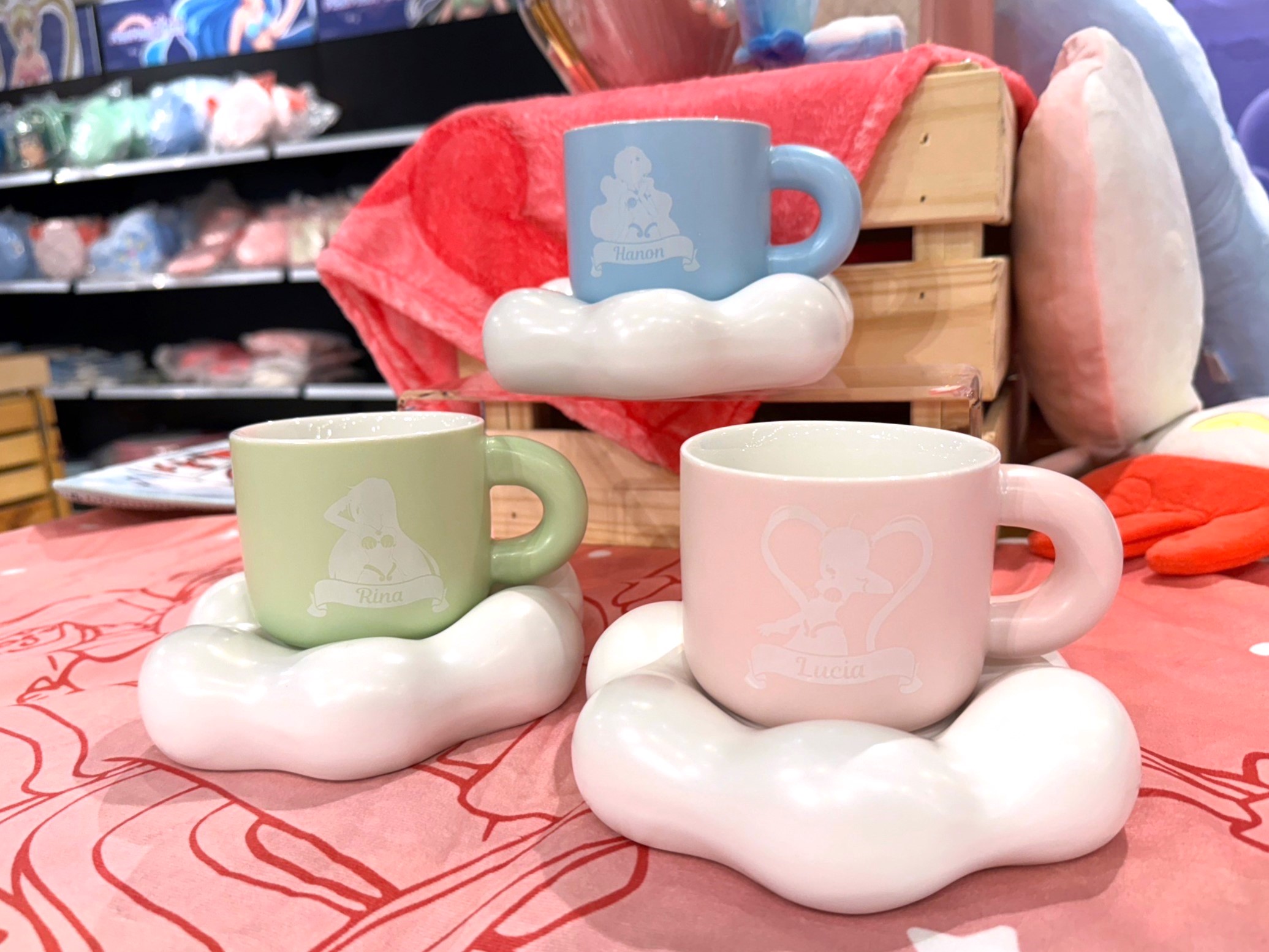 首推超可愛的陶瓷雲朵杯,露亞、波音及莉娜三款,杯身有著各自不同的代表色,以粉嫩的馬卡龍色搭配剪影,加上看起來輕飄飄、軟綿綿的分離式雲朵杯座,整個超級夢幻,一定要入手收藏!還有特別設計的Q版露亞造型娃娃,立體的露亞有9吋和16吋不同大小,可愛的模樣讓人想要一次收齊。新商品都將於現場及FANFANS官網同步開放預購!