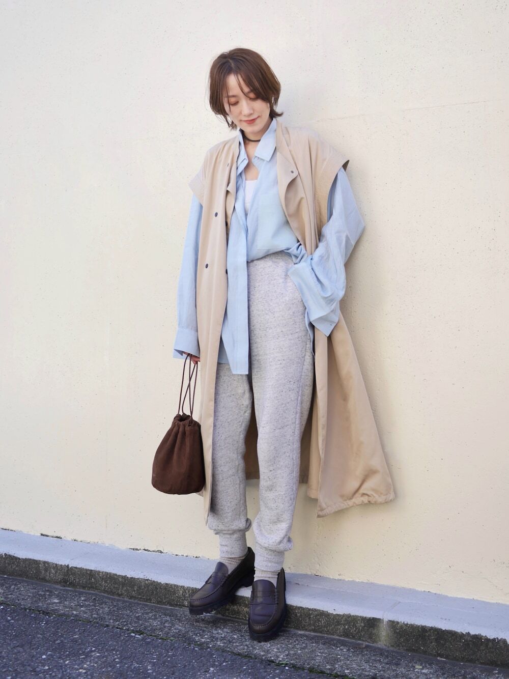 近期相當熱門的休閒長褲,像是棉褲、工裝褲、運動褲,每款皆成為日本街頭能見度很高的單品,而本季推薦將卡其色風衣與棉褲混和,連結出兼具街頭印象的風格,另外也可利用工裝褲和卡其色風衣搭配,不論是加寬感襯衫或短袖上衣,輕鬆點亮知性的日系大人感氣息。