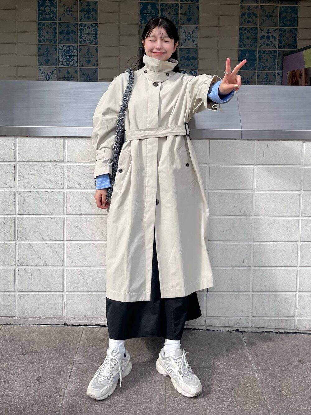 本季一定要擁有的風衣穿搭推薦03.卡其色風衣 + 長裙