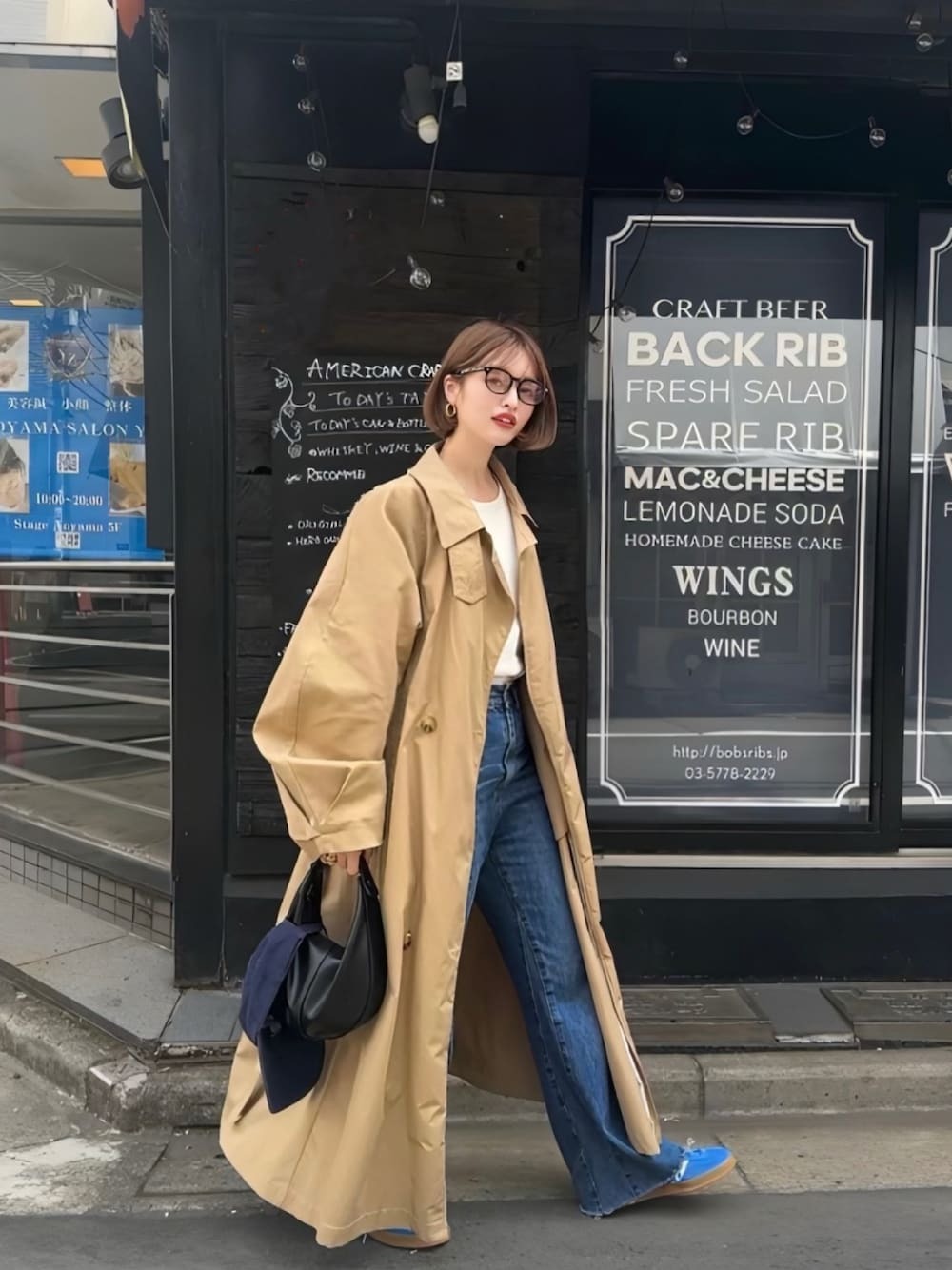 本季一定要擁有的風衣穿搭推薦01.卡其色風衣 + 牛仔褲