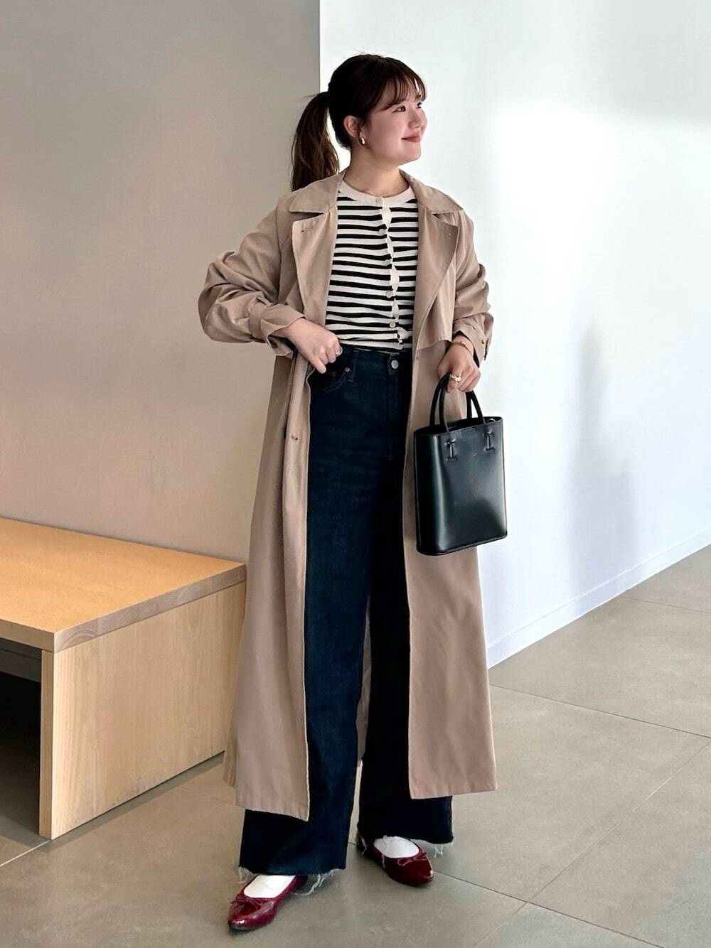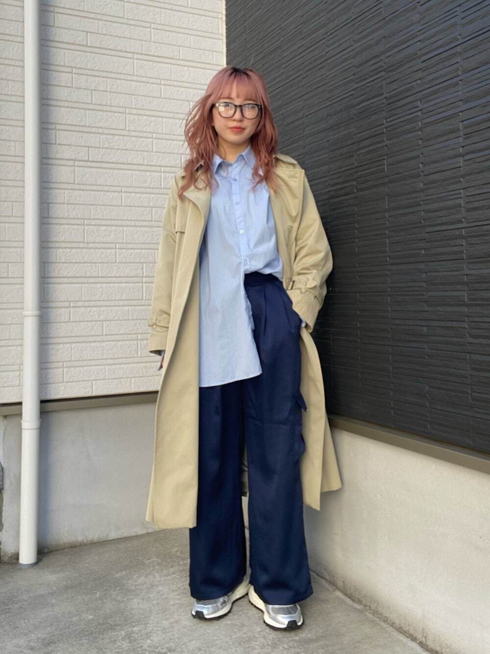 本季一定要擁有的風衣穿搭推薦02.卡其色風衣 + 休閒褲