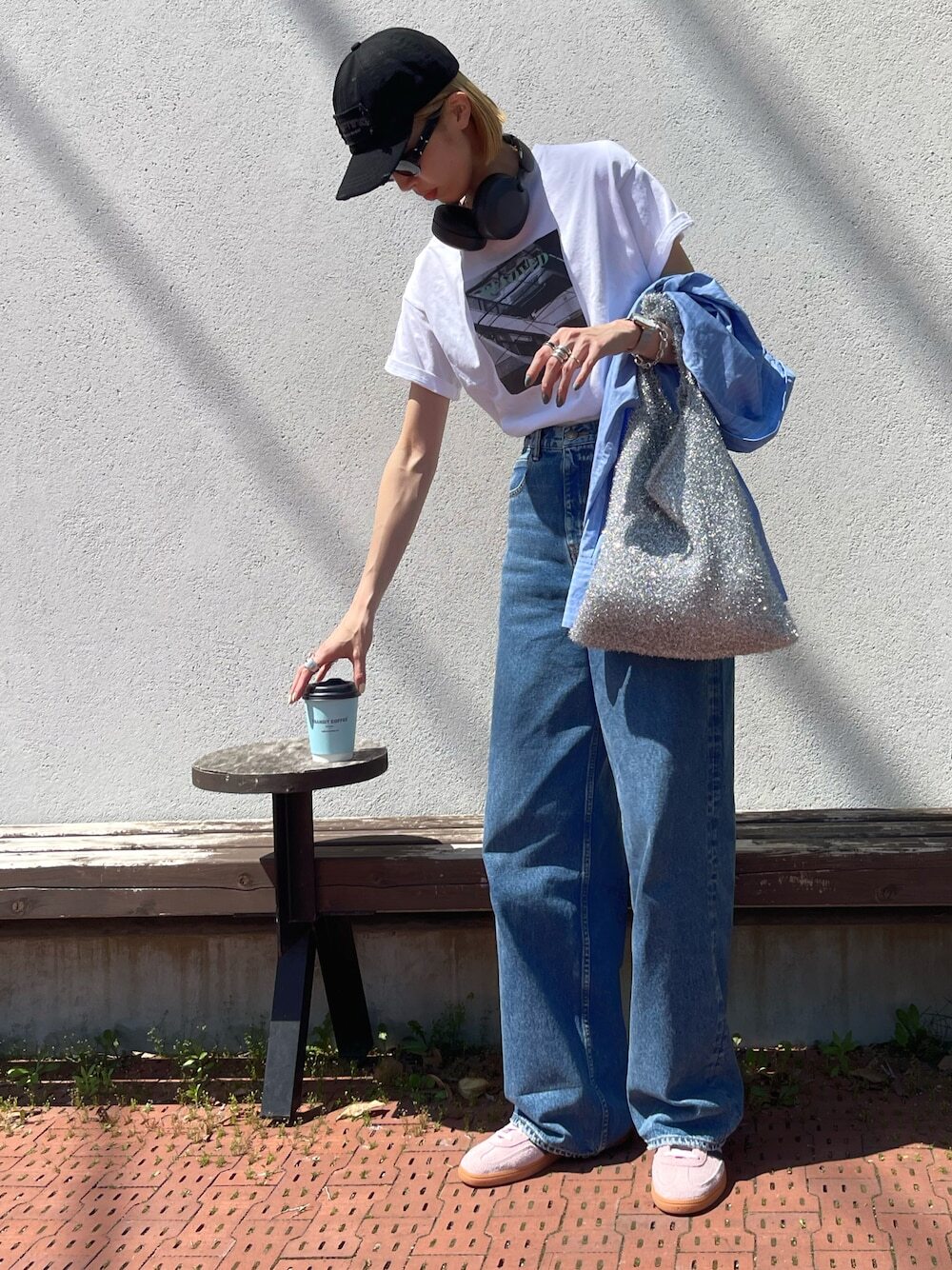 衣櫃裡一定都有的短袖 TEE ,向來是懶得想穿搭時,隨手一抓就能快速穿出門的實用單品,但有時短袖 TEE 容易讓衣著顯得沒精神,加上版型也易使身形顯胖,此時可以利用上衣內紮連結修飾度之外,再混合高腰剪裁直筒長褲,立即讓整體帶來挑高線條。