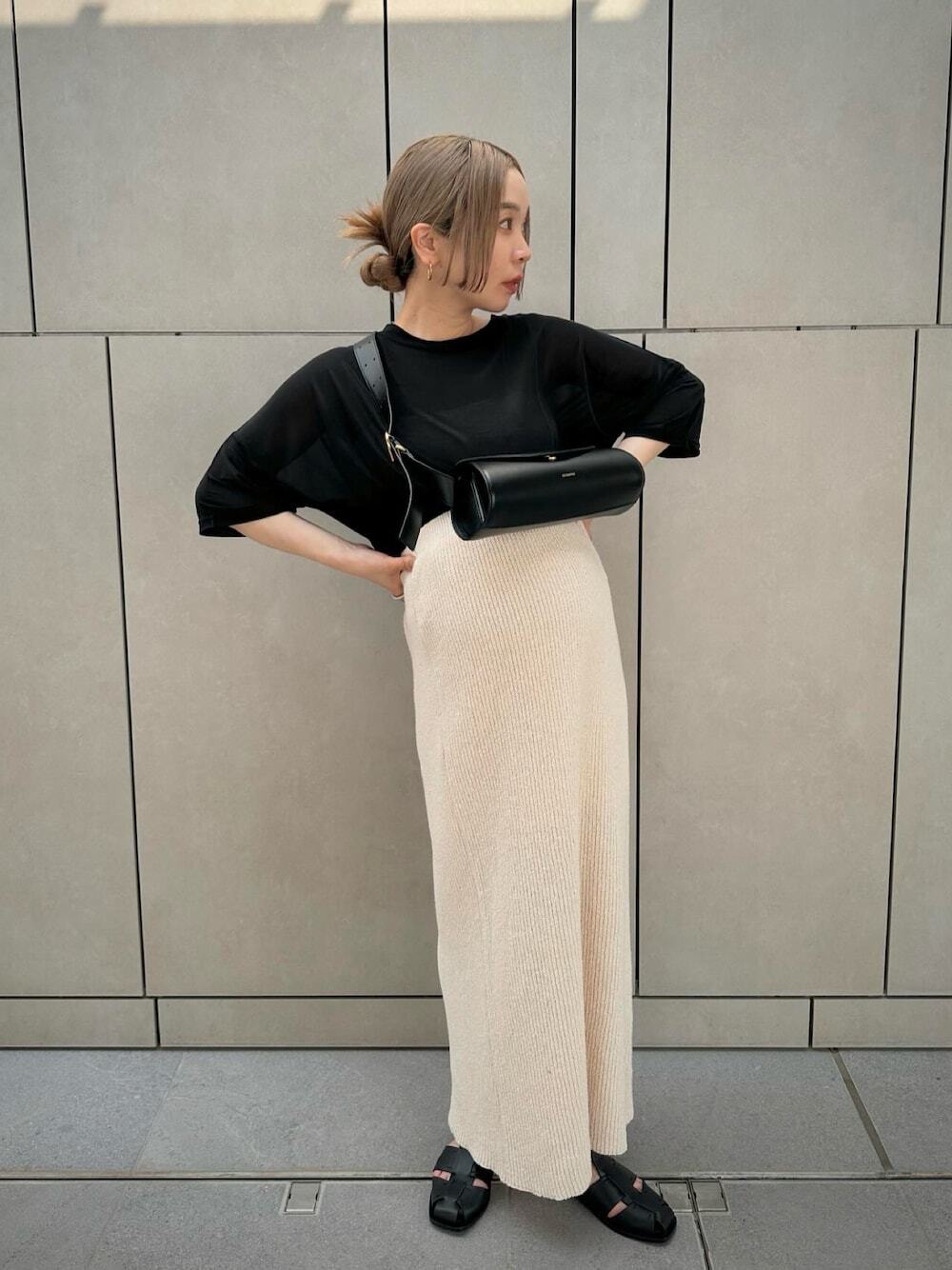 近年來簡約風格成為街頭時尚人士的最愛之一,去繁從簡的穿衣方式,使造型擁有一股高級質感,選擇短上衣 + 落地長裙,運用提高腰線設計,讓人輕鬆擁有腰部以下都是腿的視覺修飾,而落地長裙能使雙腿更修長,隨性踏上高跟短靴,簡單展現 +5cm 的完美身高。