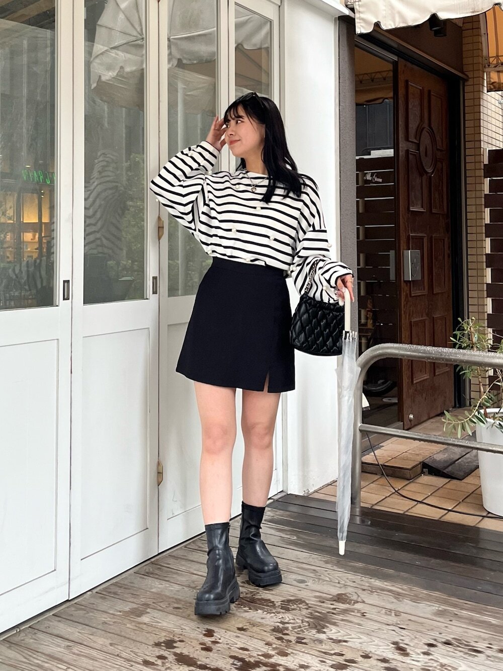 短靴除了可以穿出休閒、知性風之外,充滿輕甜可愛的日系氛圍也能輕鬆擁有,推薦選搭 A 字短裙和短靴混合,斜線剪裁裙款能修飾臀部與大腿顯瘦,而短靴同時拉長雙腿比例,瞬間讓腿部纖細又修長,上衣則可結合條紋上衣或者背心、襯衫疊搭,隨性加上手拿包展現滿分細節層次。