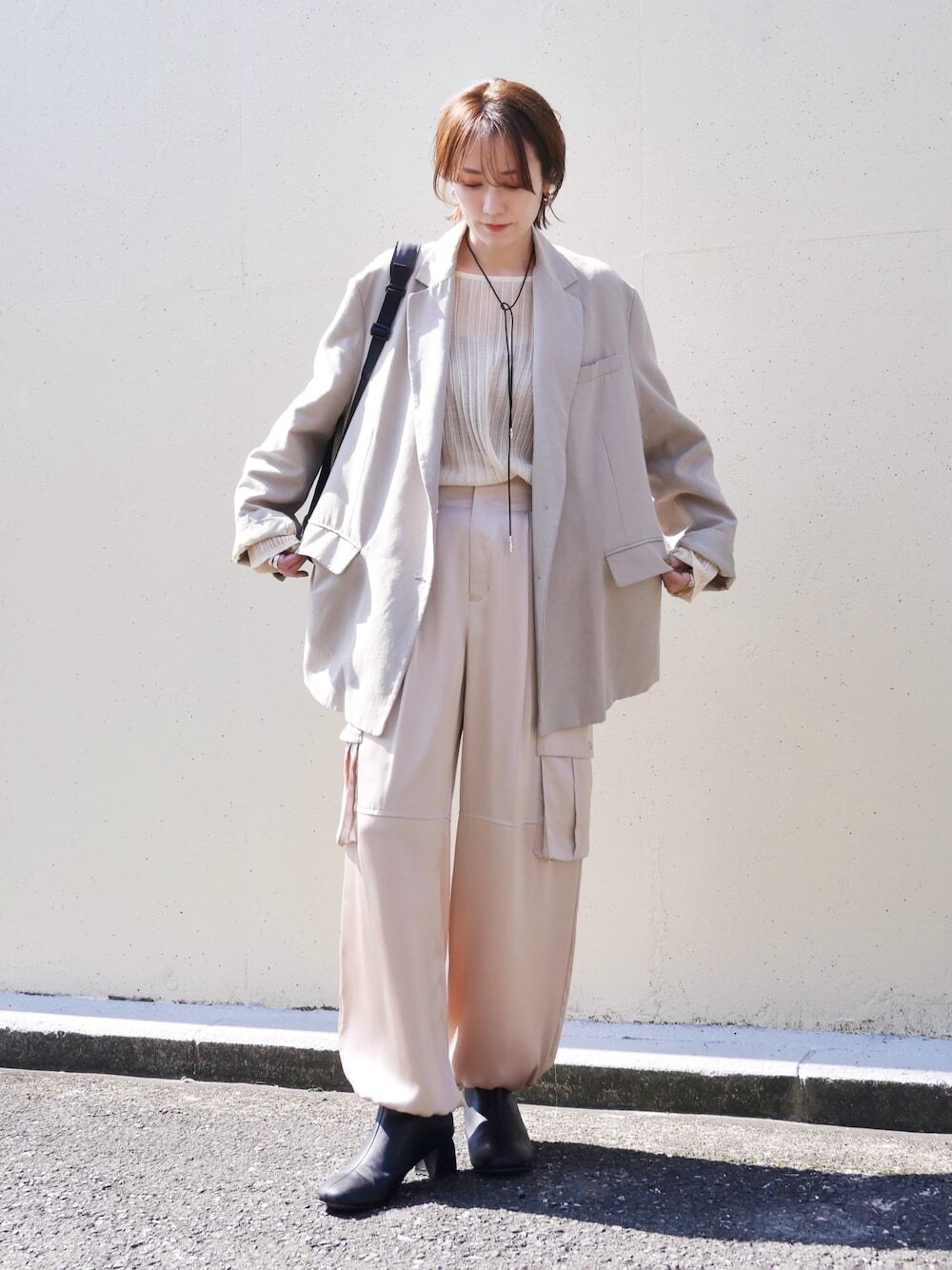 當想為上班族造型連結幹練的風格時,短靴絕對是不可錯過的首選,以西裝外套 + 打褶長褲 + 咖啡色方頭短靴,呈現簡單又知性的日系大人感,如果想增加點搭配性的話,將褲款換成近期相的熱門的工裝褲,再加上黑色高跟短靴,營造質感兼具的通勤 Look 。