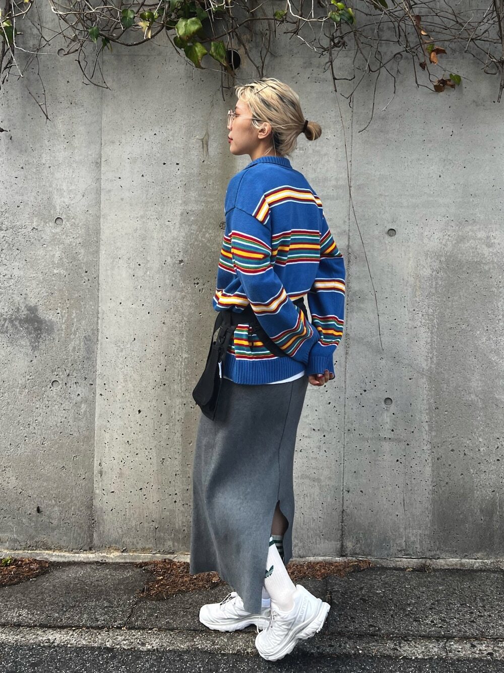 帶點溫柔形象的 A字短裙,向來是能為衣著增添一股優雅魅力的必備單品,斜線剪裁能讓臀部有收縮感,同時使大腿擁有小一吋的視覺,以寬領口或 oversize 上衣混合,營造令人注目的日系慵懶風,另外加上長襪與球鞋,簡單傳達好感度滿分的迷人造型。