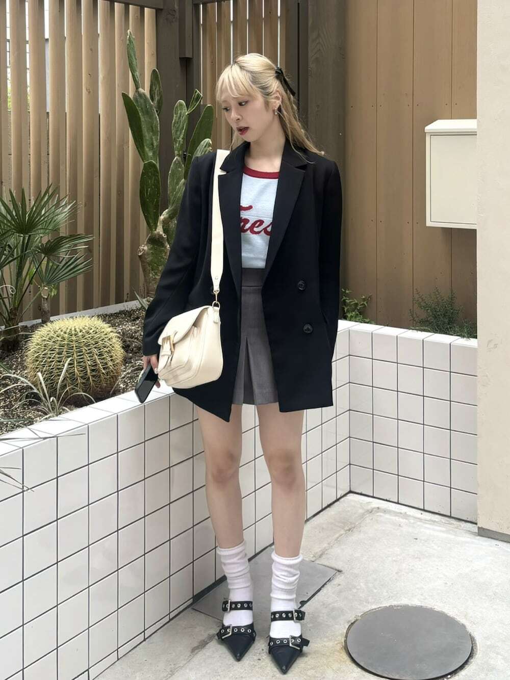 當想為衣著增加幾分搭配玩餵時,不妨嘗試融入運動街頭風單品,像是寬感或翻領條紋上衣都是不錯的推薦,下半身選用開衩牛仔裙,能為穿搭注入幾分街頭印象,結合厚底球鞋和白襪,立即展現專屬魅力的日系街頭 Look 。