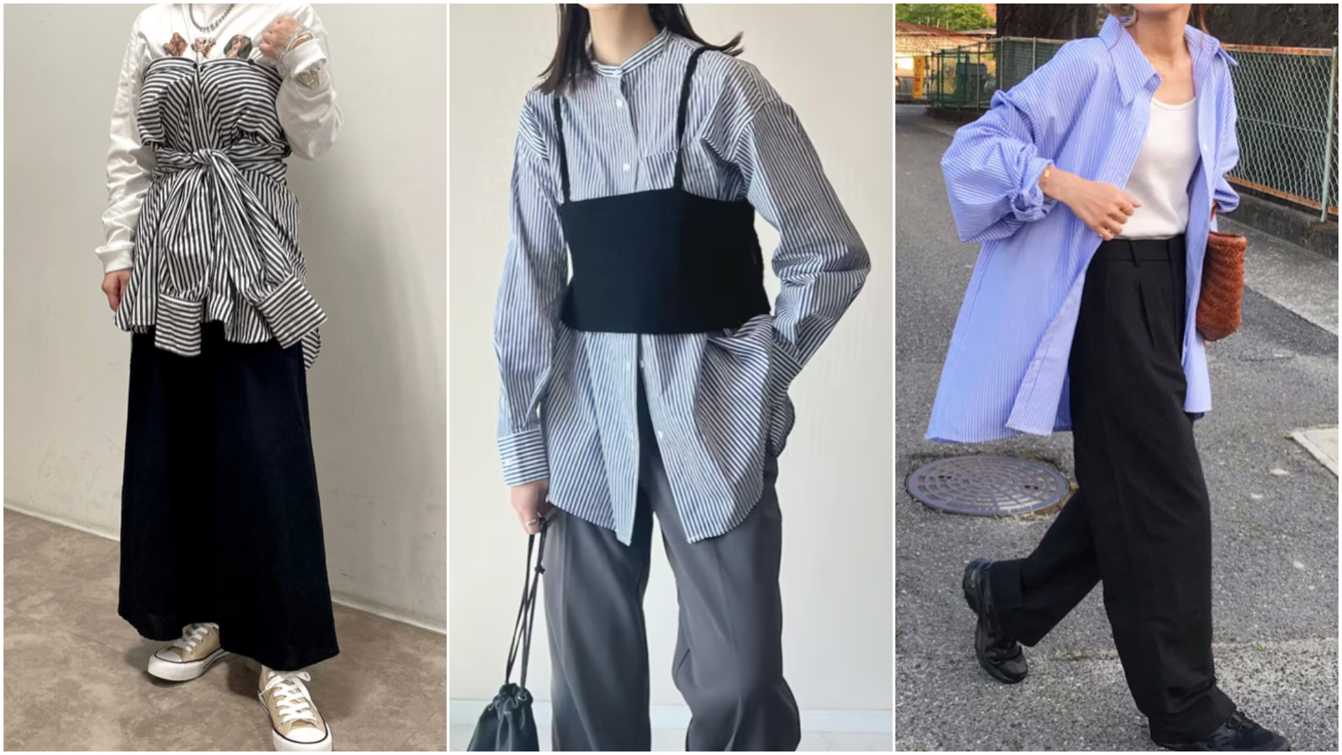 襯衫一直是上班族的愛用單品,但如果只會把襯衫排排扣起來紮進褲子裡的話,就太浪費這個萬用的單品啦!襯衫的材質有軟有硬,再搭配上也可以配合材質去做調整,像上圖展示的三種搭配,就是日本女孩日常裡最常出現的穿搭術,只要善用手中的襯衫,衣櫃就好像多了好幾件衣服呢!