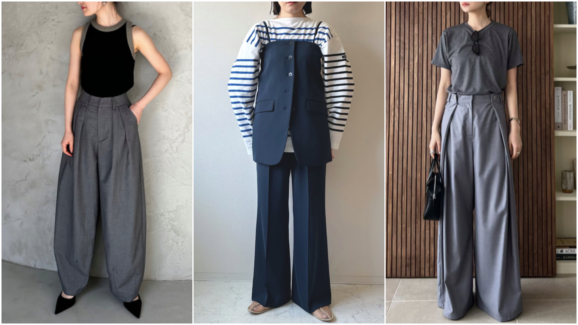 在職場上大多數的上班族都會選擇寬鬆的西裝褲做為萬年下身單品,在前幾年開始流行西裝褲休閒化之後,就有各種不同版型的西裝褲開始問世,有球狀、直筒、闊腿、喇叭褲等版型,在造型上多了很多選擇,如今穿西裝褲已經不會被認為是呆板的上班族了!而西裝褲大多是以寬鬆為主,在版型上有一定的修身效果,搭配上簡單的上衣就能輕鬆變有型,無論是強調修飾身形的俐落感,或是以穿搭層次為主題的風格,西裝褲都可以輕鬆達成各種需求。