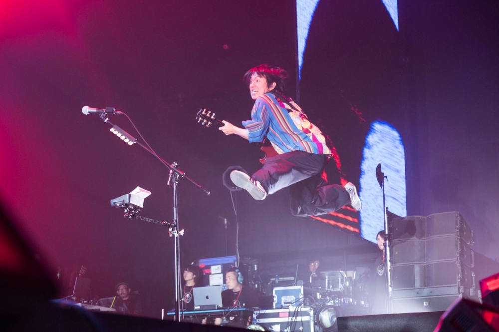 接著獻上2006年發行的〈セプテンバーさん〉,比起前幾首用色較強烈的燈光安排,那一束束有如清晨陽光傾瀉而下的金色隨著速度恰到好處的定點轉圈,讓整個會場不論從哪個角度均能獲得暖陽正照耀著自己的錯覺、令人感受到被治癒和包覆的溫暖。節奏愉快的〈七ノ歌〉除了讓全場陷入一陣搖擺不說,還能一窺主唱因不小心忘詞而小小地「掌嘴」的逗趣舉動。