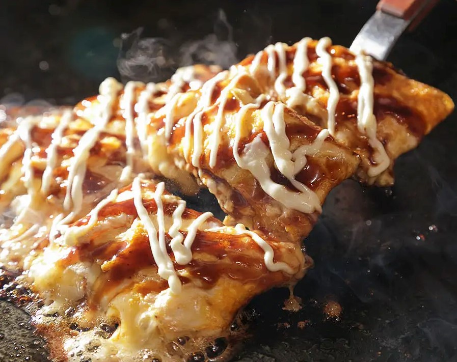 大阪燒和文字燒是兩種風味豐富的和風煎餅。將調味過的小麥粉和高麗菜、豆芽等材料混合後,在熱鐵板上烘烤。這兩種煎餅都價格實惠且分量十足,深受民眾喜愛。許多大阪燒店也提供文字燒。