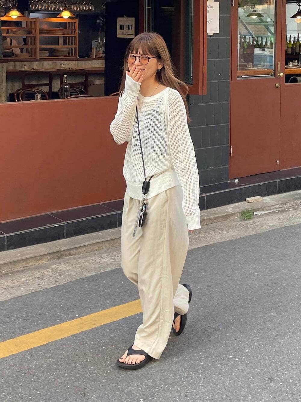 平時經常關注日系品牌的大家,相信都有發現,今年許多品牌紛紛推出薄針織簍空上衣,不僅適合初夏穿著,還能兼具遮陽防曬的功能,以白色簍空上衣搭配奶油色休閒長褲,即使沒有過多單品加乘,也可快速點亮細節焦點,隨性混搭帽子與厚底夾腳拖鞋就很好看。