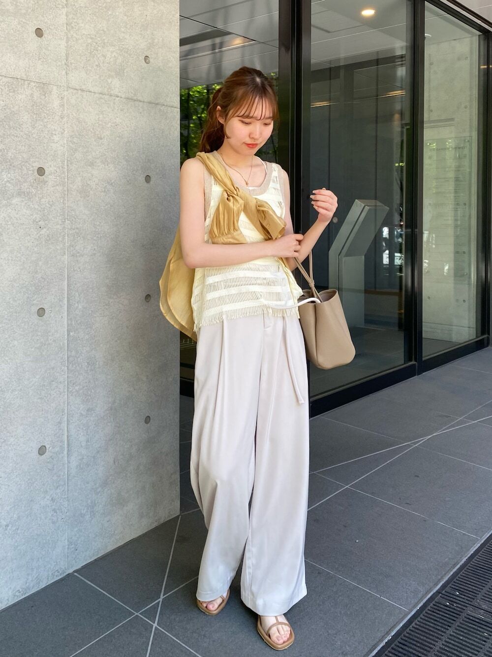 以奶油色單品混搭營造夏日好感穿搭02.背心