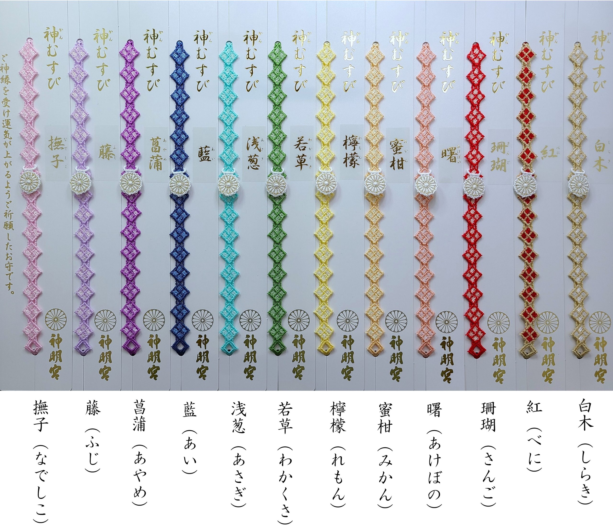 3月16日より桜の季節の神むすび(レースブレスレット型お守り)を頒布します。今年は装いも新たな神むすび雅三種類が登場します。数に限りがある為、無くなり次第頒布終了となります。郵送をご希望の方はこちらをご覧ください。https://t.co/Xz86NKRy7l pic.twitter.com/e8p07FqoZQ