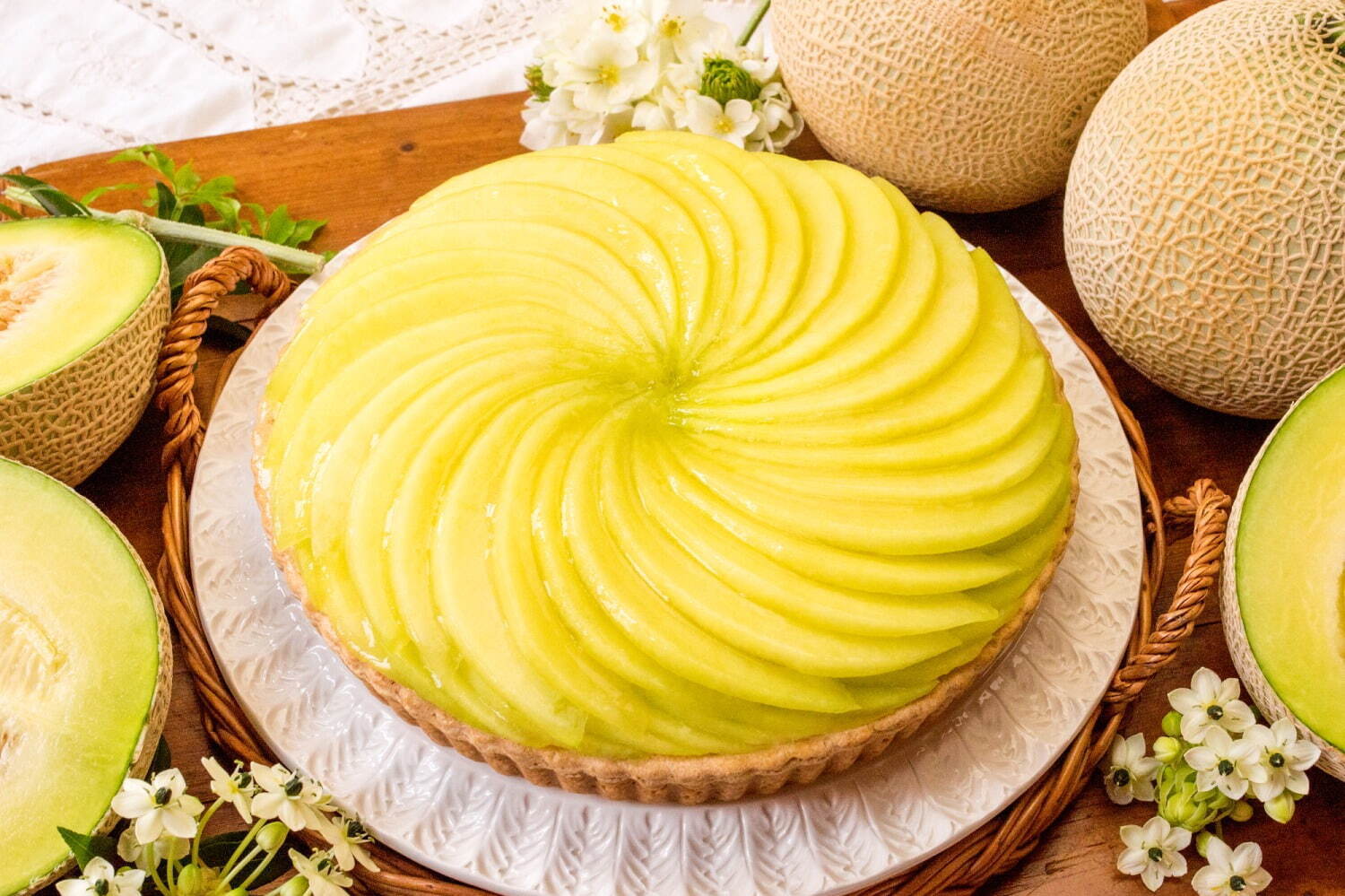 靜岡縣袋井產的「王冠哈密瓜」被譽為「哈密瓜之王」,而「特選 靜岡県袋井産王冠哈密瓜塔」就是使用這款芳香濃郁的哈密瓜。以豐潤的奶油香味的塔皮,鋪上柔滑的卡士達奶油和海綿蛋糕,最後再添加了與王冠哈密瓜相得益彰的白蘭地,讓口感更佳奢華。