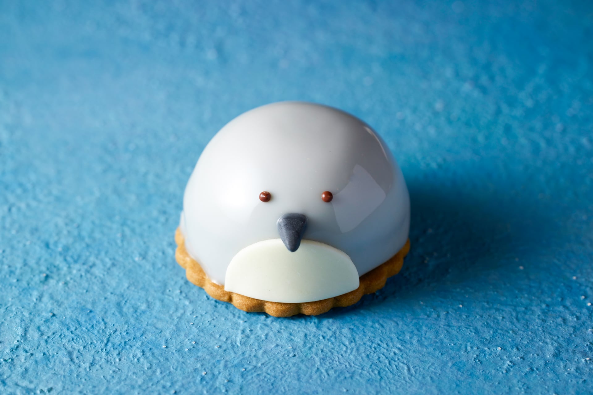 這款巧克力慕斯甜點,內含有機巧克力慕斯和柳橙果醬,帶來甜味、酸味和微苦的清爽口感。外層覆蓋著加入竹炭調成淺灰色的白巧克力,再現了可愛的小企鵝形象。不僅在視覺上令人愉悅,其豐富的口感和多層次的味覺體驗也令人難以抗拒。