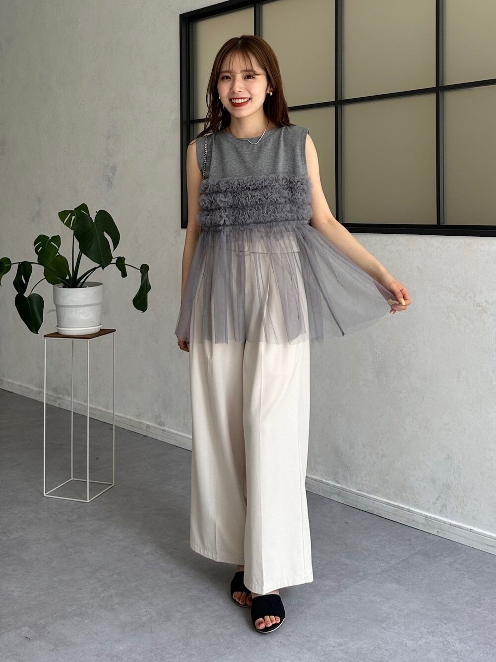 以雪紡、蕾絲等面料為主的背心,是近日非常熱門時髦單品,融入立體貼花與細褶設計,讓背心傳達層次豐富的造型視覺,選搭寬感直筒褲或牛仔褲,展現令人為之一亮的日系質感,並散發出優雅女孩的穿搭氣息,不論混搭涼鞋、拖鞋都很合適。