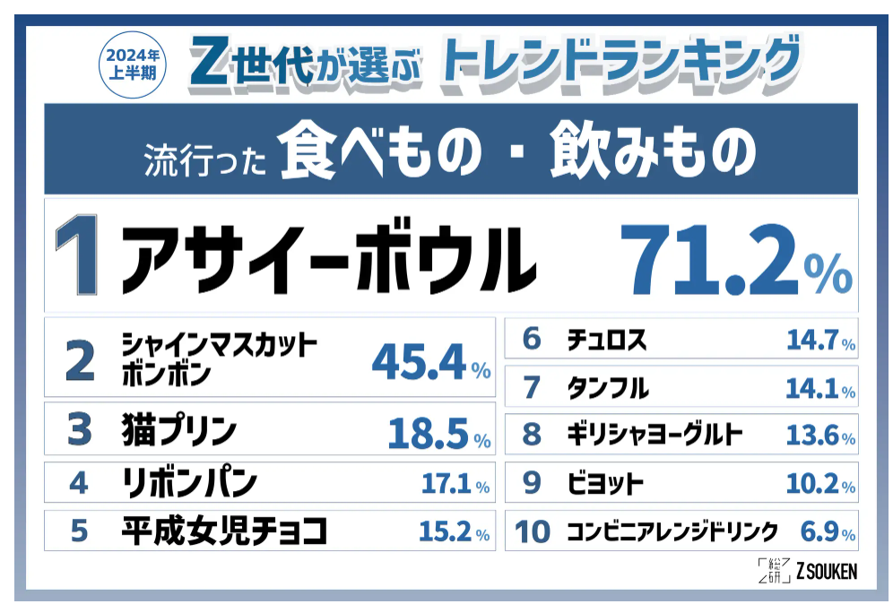 這次就帶大家來看看2024年上半年日本Z世代在關注的食物、流行語以及物品的前三名吧!