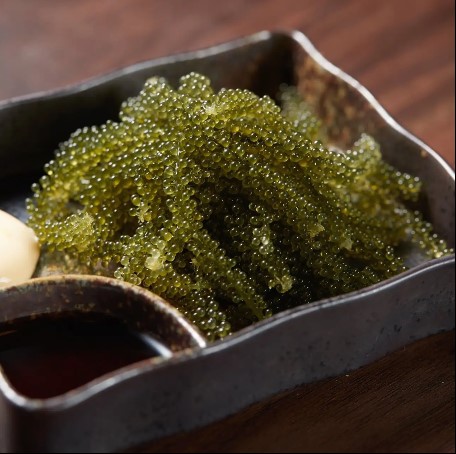海葡萄被認為是沖繩料理中最獨特的料理之一,是一種帶有小泡狀豆莢的海藻料理。 因其外觀類似綠色魚子醬,也被稱為綠色魚子醬。