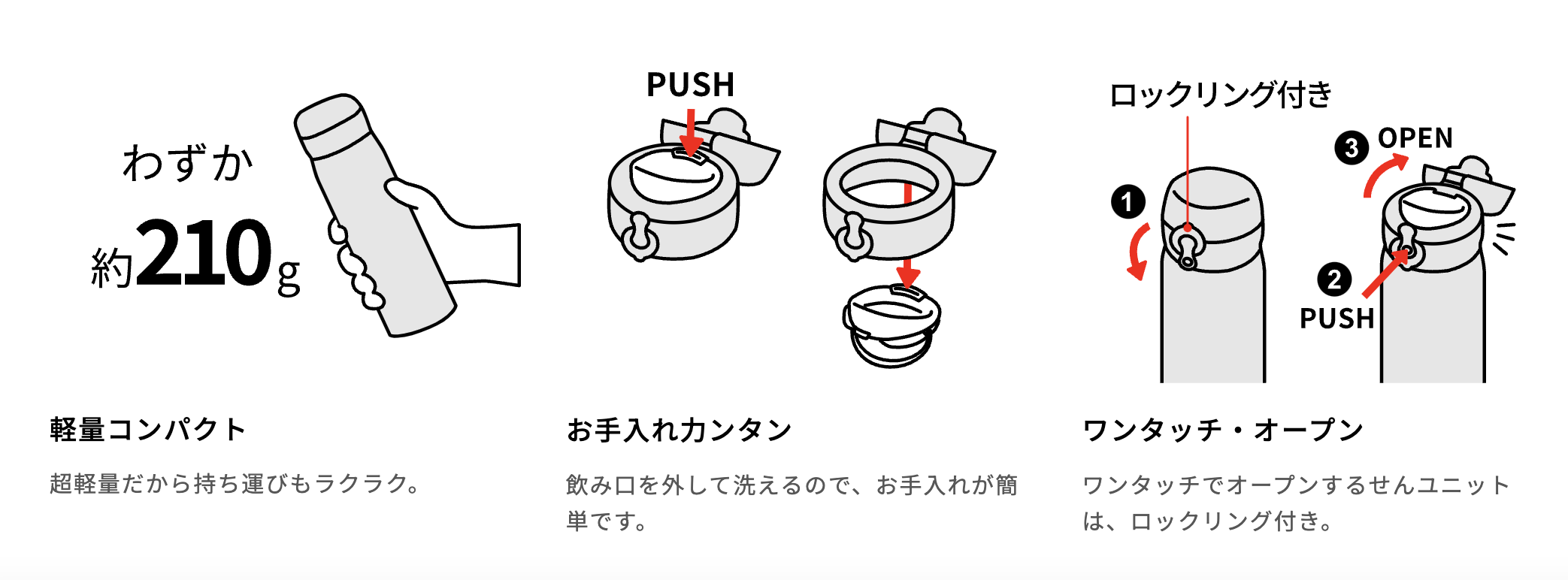 本系列的保溫瓶容量是500毫升,一次能裝足量的液體,很適合上班族使用,整體採用輕量的不銹鋼材質,瓶身只有210公克,就算要帶出門也不會太負擔,可以扣起來的保溫瓶蓋也多一層保障,不害怕液體會打翻。