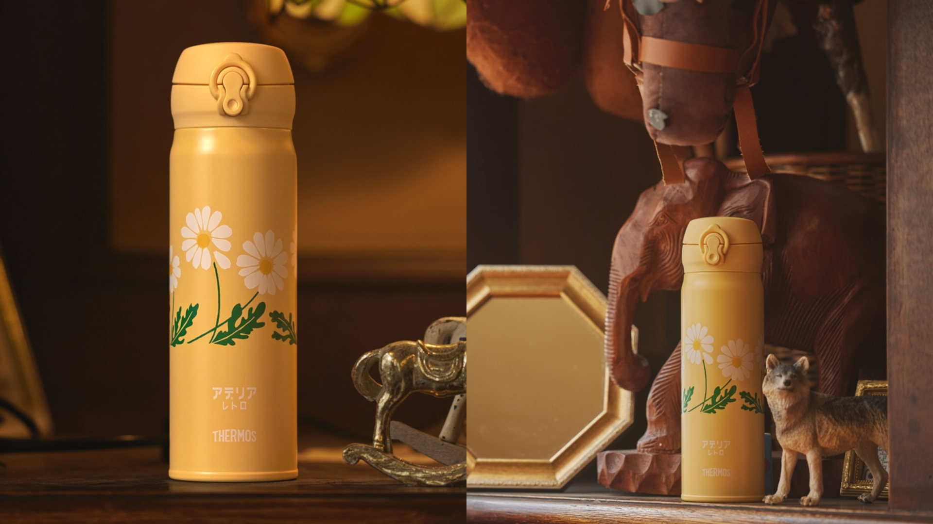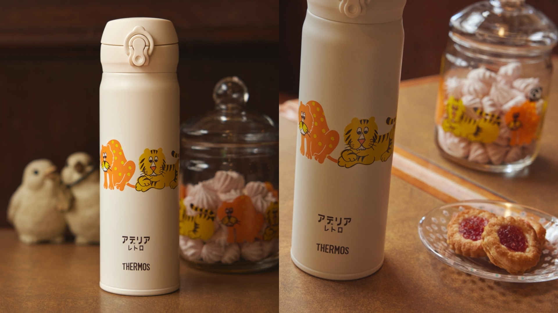 Adelia Retro系列中最有辨識度的一款動物系列當然也不能錯過啦,復古感的老虎與花豹印在象牙色的保溫瓶上,喜歡童趣風格的你請鎖定這款吧!