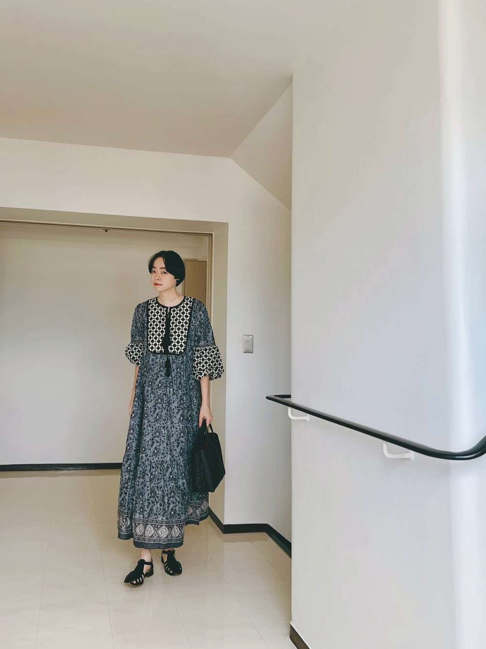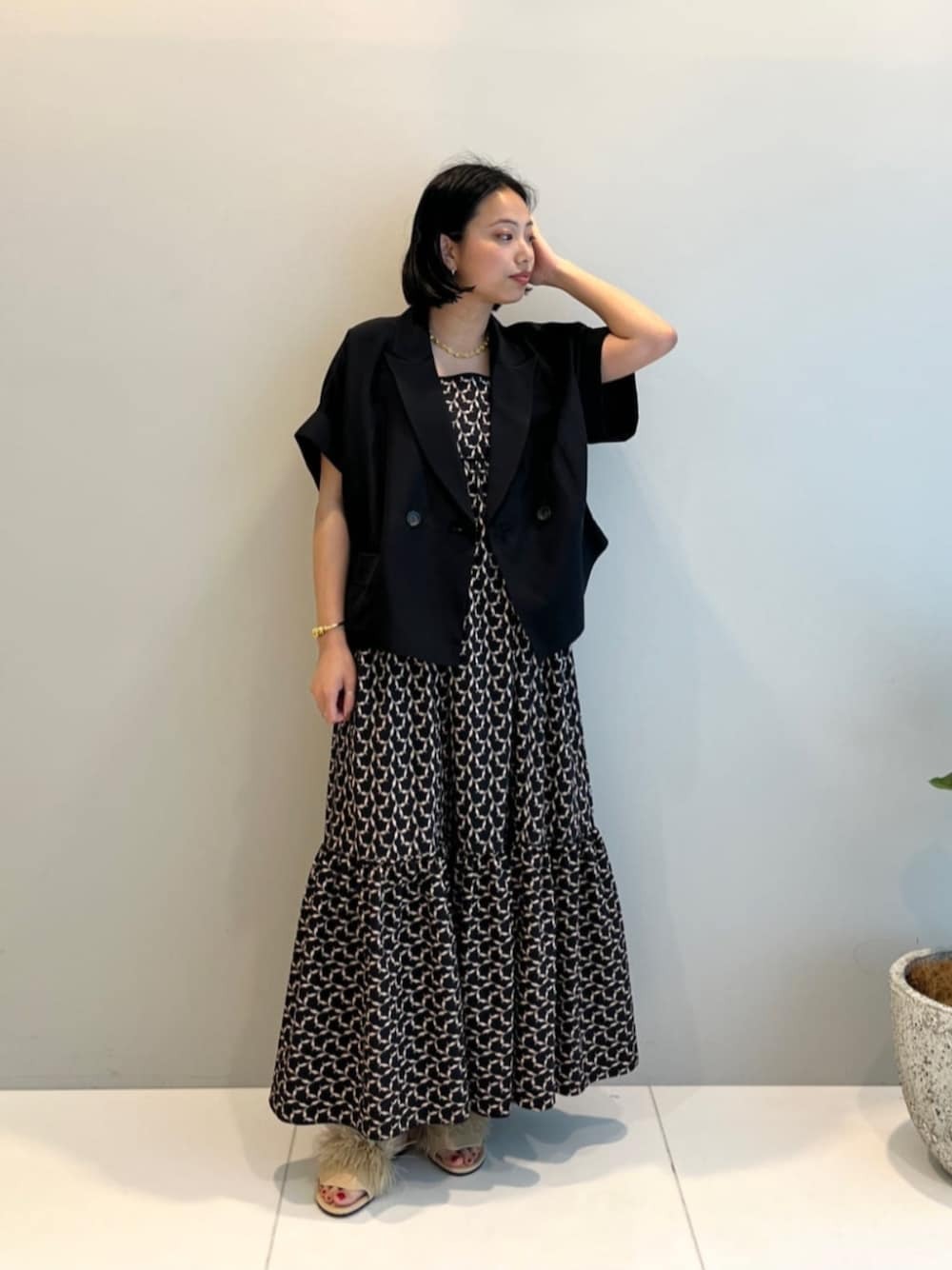 如果想把度假風格穿出微正式感的話,選擇短袖、外套 + 印花洋裝,為整體注入一股高級兼具的質感氛圍,此造型方式適合任何場合穿著,不論上班、聚餐或出遊,讓你瞬間擁有時髦聚焦的日系魅力。