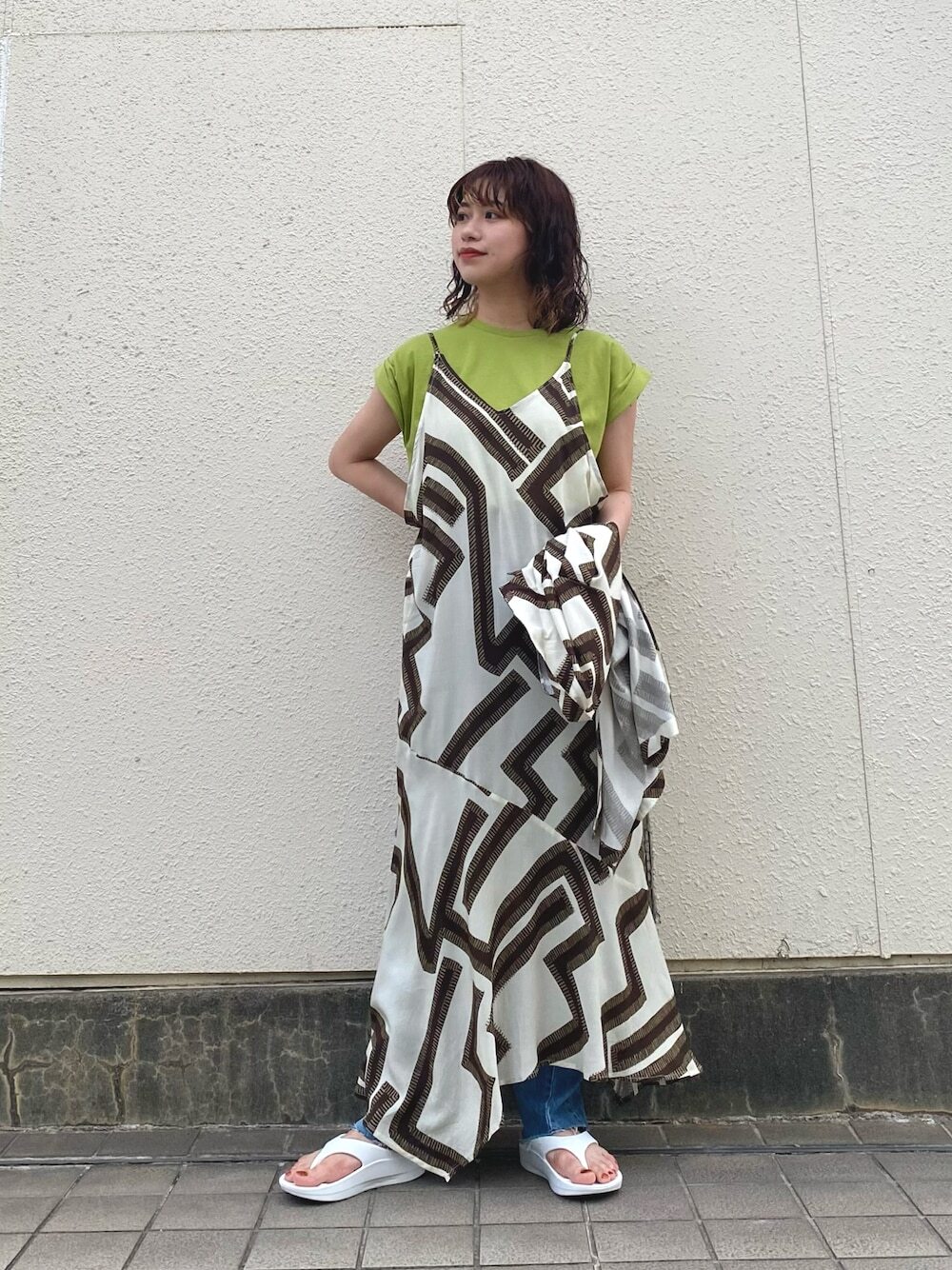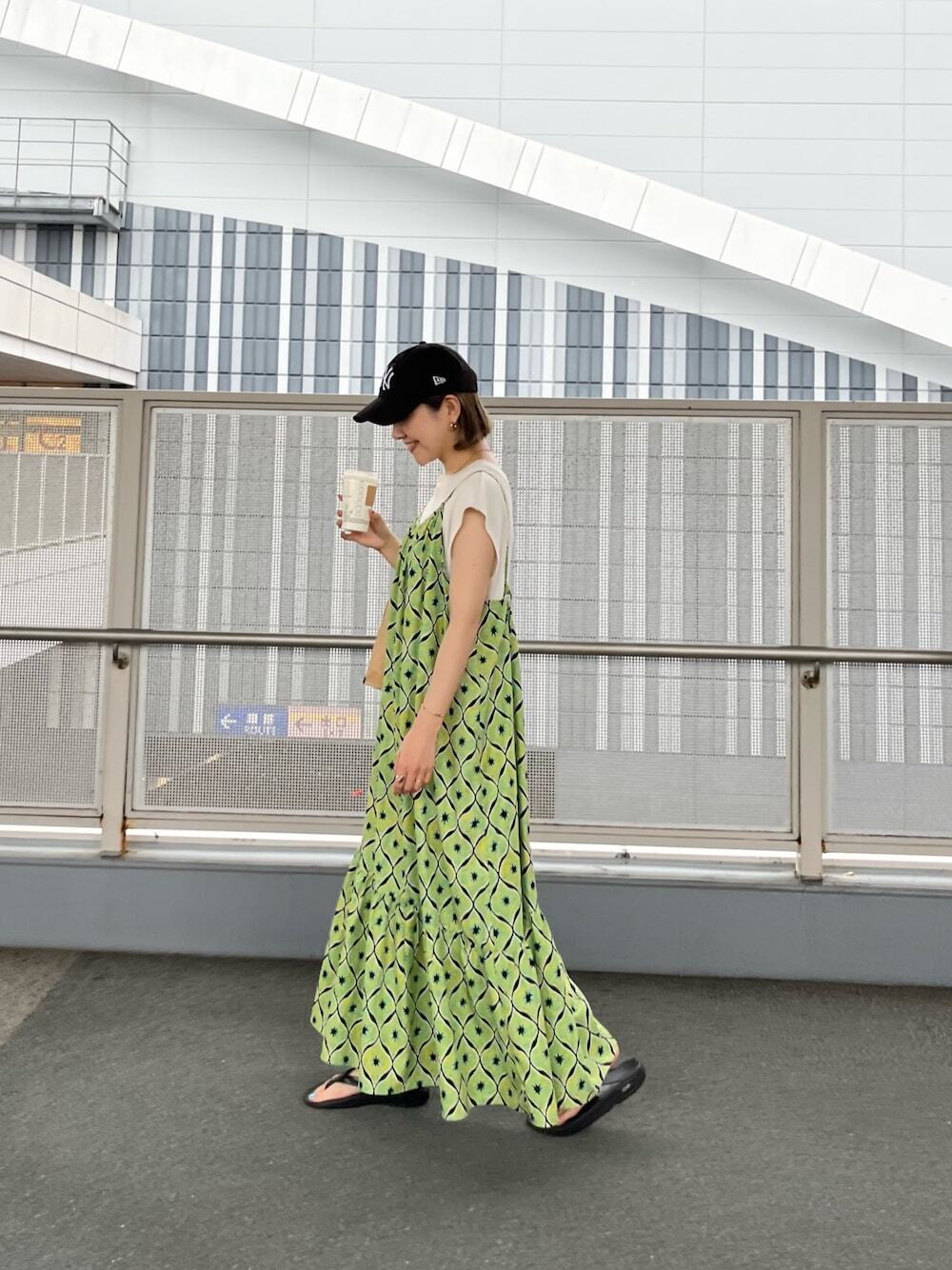 細肩帶設計的印花洋裝,非常推薦給喜歡多層次搭配的大家穿著,內搭背心或者素色短袖上衣,輕鬆點綴日系時髦氣息,結合幾何圖案的印花風格,看起來簡約率性又大方,再混搭棒球帽、拖鞋快速打造注目 LOOK 。