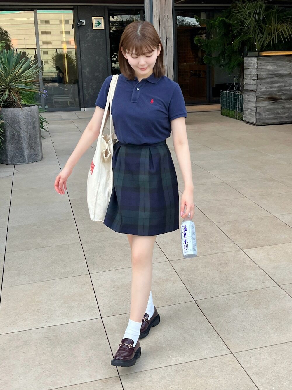 帶有吸濕排汗乾爽材質的 POLO 衫,絕對是夏季不可錯過的必買款,尤其運動風混搭風熱潮持續不減,非常推薦大家在本著用,以深藍色 POLO 衫 + 五分短褲為造型組合,營造輕復古的日系搭配,另外選搭 A 字短裙與樂福鞋,瞬間展現女孩感的輕甜魅力。