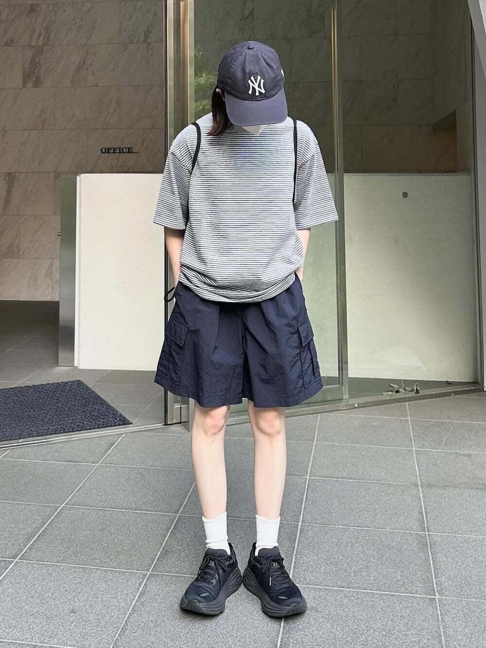 夏日高溫容易使頭髮看起來扁塌,當懶得整理頭髮的時候,不妨嘗試搭配深藍色棒球帽,尤其深色系屬於百搭實戴的色系,可以快速駕馭不同風格,不論以洋裝或 Oversize Tee 混搭都很合適,隨性踏上球鞋、夾腳拖鞋便能時髦上街。