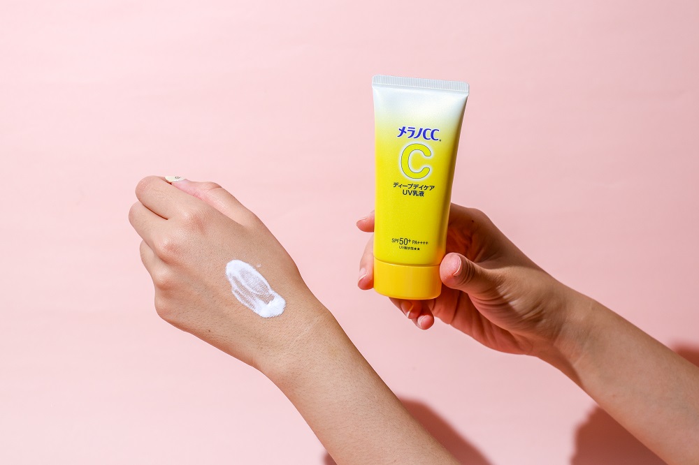 「Melano CC UV乳液(暫譯:メラノCC®ディープデイケアUV乳液)」是在日本藥妝店中相當暢銷的Melano CC系列的另一新品,其特色是含有持久型維他命C誘導體能修護肌膚維持保濕以及他的秘密武器「偏光珍珠粉」與「皮脂吸附粉末」成分有效製造出自然色調的粉嫩肌膚,不只能防曬又能保濕,還是妝前打底的得力助手,難怪在日本相當受到歡迎囉!