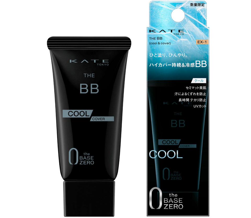 KATE在今年5月推出「KATE涼感BB霜(ケイト ザBB(クール&カバー))」是一款具有「冰涼」使用感且能夠徹底遮蓋肌膚問題的BB霜。不僅能夠隱藏毛孔、凹凸和色斑,還能防止多餘皮脂造成的油光和黏膩感,以及汗水引起的妝容脫落。這款BB霜具有SPF24和PA+++的防曬效果,共有兩種顏色可供選擇。