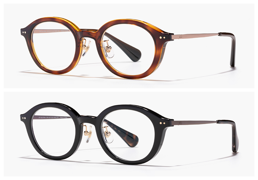 JINS大眼睛系列眼鏡應用視覺錯視原理,從框型、鏡框到鏡腳都進行對應調整,框型設計利用小鏡面+深色框產生錯覺,縮小鏡片範圍、配合凹透鏡厚度的包覆設計讓眼睛看起來不會變小;鏡框部分採取兩側加厚的斜角設計,修飾鏡框厚度同時減輕重量;抱頭形狀的鏡腳不僅更貼合頭部,加粗加寬的末端還可分擔鏡架重心,搭配高度數鏡片也能平衡眼鏡重心,提升配戴舒適感。JINS以三大獨特設計解決高度近視族群的困擾,兼顧日常生活使用及時尚美觀的配戴需求。