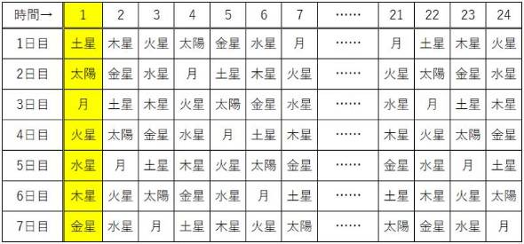 而第二種假說,則是將行星以24小時制來排序。每一個小時分別對應一個行星。當我們將第一天的第一個小時排序的話,是不是也能看出來現在所使用的曜日排序呢?只不過這兩種說法在目前都還只是假說,實際上究竟是如何制定的,還是得仰賴今後的考古學來驗證才行。