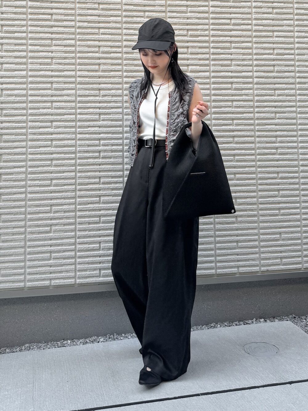 充滿高級感的灰色,相當適合想呈現大人感穿搭時著用,低調沈穩色調能襯出亮白肌膚,選搭灰色西裝外套 + 寬褲,連結知性兼具的通勤 Look ,換上背心疊搭,立即詮釋層次豐富的聚焦造型。