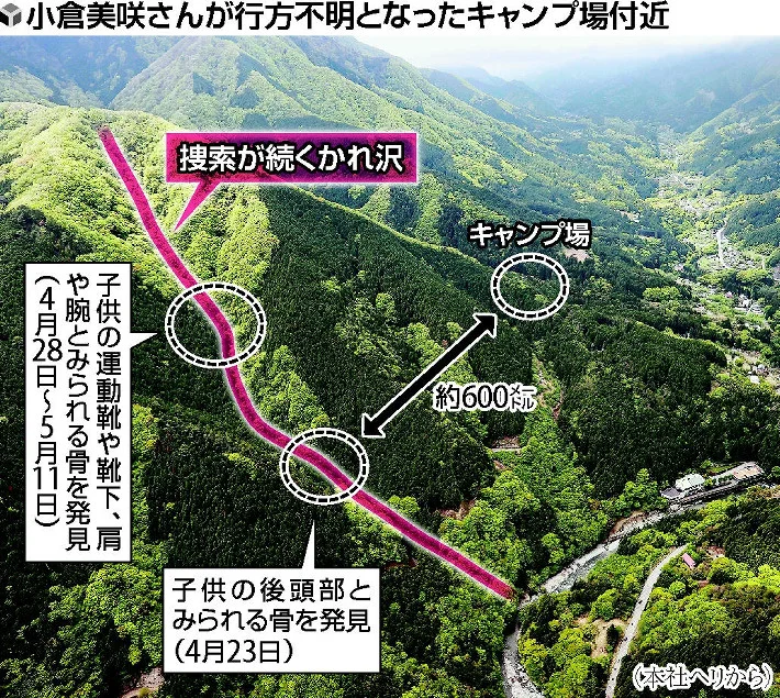 2022年4月23日,志願搜索隊的其中一人在距離露營場600公尺遠的地方發現了疑似人的頭蓋骨,而後隨著搜索,又陸陸續續的發現了小孩子用的鞋襪等等物品。同年5月,經司法解剖,其中一塊肩胛骨的身分被確認屬於小倉美咲,這起神隱事件也就這麼告一個段落,巧合的是,在得知真相的這天,正好是她10歲生日的隔天,也是冥冥之中自有緣分。