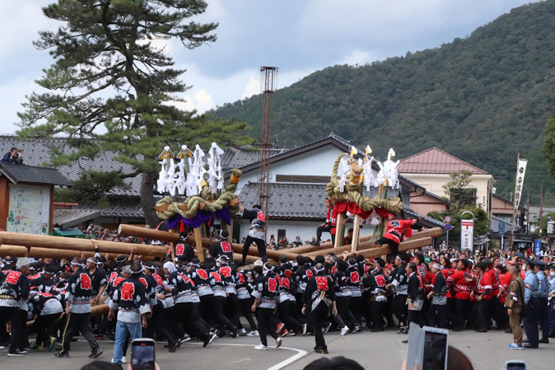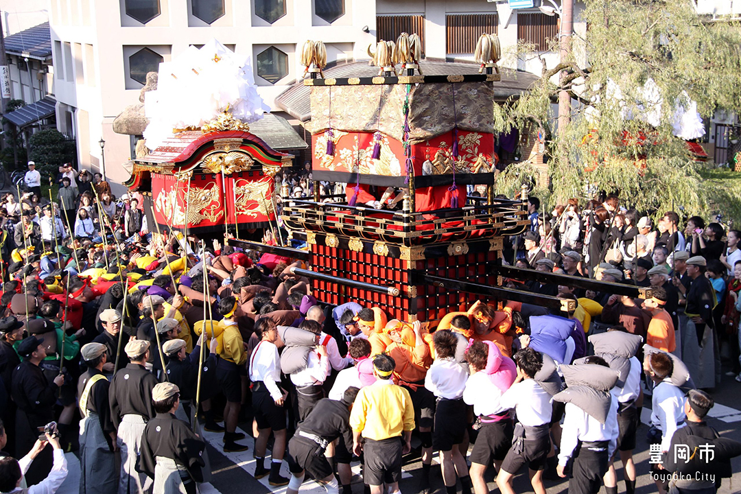 當地民眾合力扛起彩車後互相撞擊,撞壞對方瞭望台的一方勝出,場面非常慷慨激昂。雙方勢必要與對方一決高下的氣勢,將祭典的張力拉滿,連一旁觀賞的民眾都不自覺地跟著熱血沸騰。其中更以身著黑色法披的寺町與穿著紅色法披的川原區的彩車較量最有看頭。