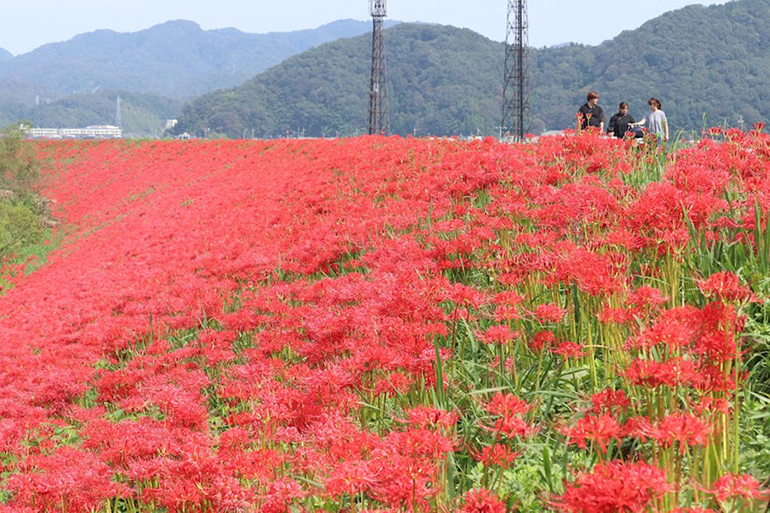這條自行車路線,在每個季節都有著不同的風貌,而秋季9月下旬至10月上旬期間,圓山大橋周邊盛開一整片赤紅色彼岸花海更是令人驚艷,不同於楓葉內斂穩重的橘紅,火紅的彼岸花更加鮮豔亮眼!