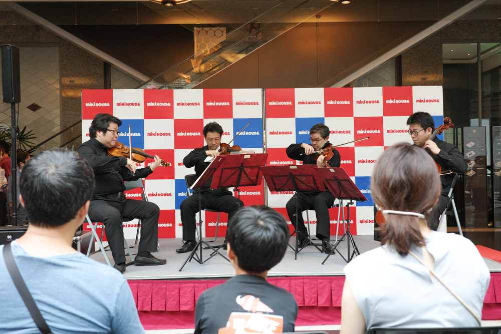 日本著名精緻兒童服裝和兒童鞋的日本品牌MIKI HOUSE在8月25日邀請了日本三大頂尖交響樂之一的NHK交響樂團特選成員在寶麗廣塲開啟了小小演奏會!四人編制的四重奏經典演出了經典古典樂以及大朋友小朋友都喜歡的吉卜力音樂,讓家中大寶二寶們能在夏季的尾巴收收心並跟隨樂音走進交響樂的世界。