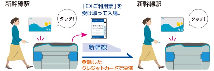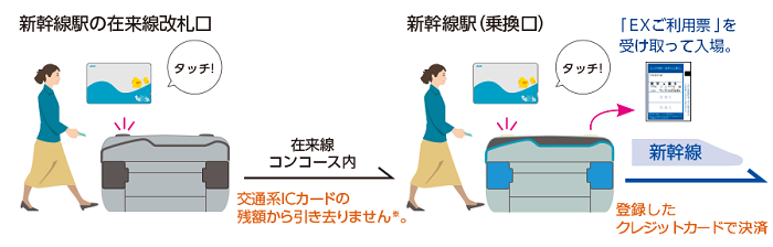 如果有先將Smart ex綁定IC交通卡的話,就直接拿出手機或IC交通卡刷進一般電車車站,接著再換乘新幹線再刷一次,這時候閘口就會自動吐出「EXご利用票」,上面就會寫你搭乘的車次、時間等資訊,就相當是座席證明,所以一樣要拿好囉!