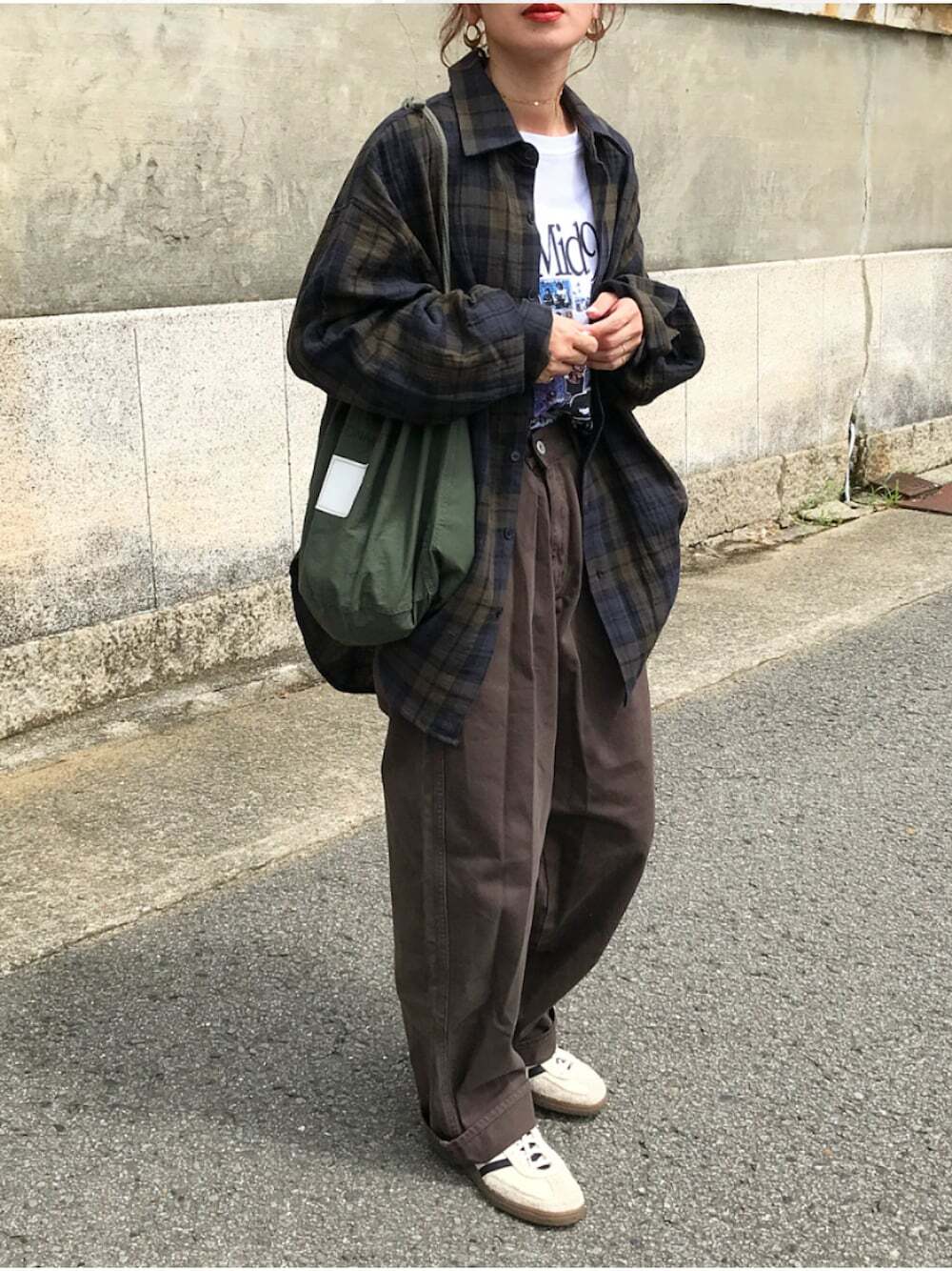秋季以格紋單品混搭日系街頭層次04.格紋西外